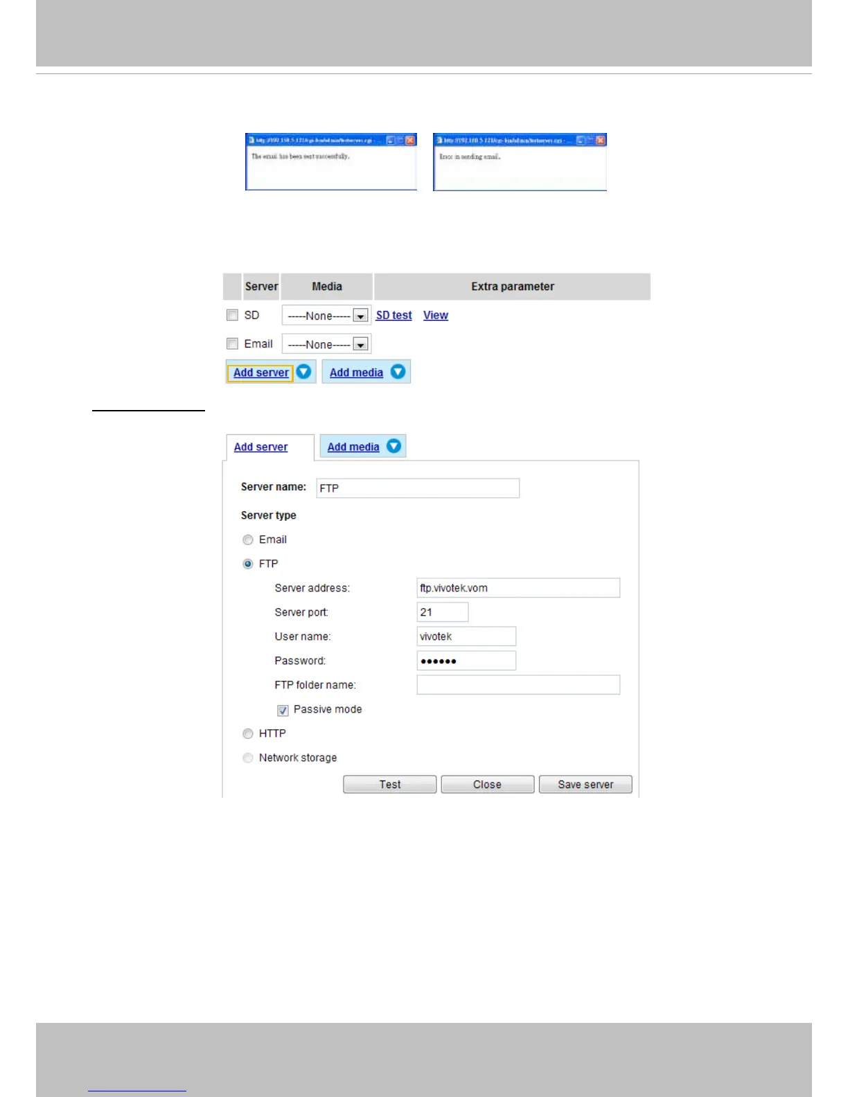■ Server address: Enter the domain name or IP address of the FTP server.