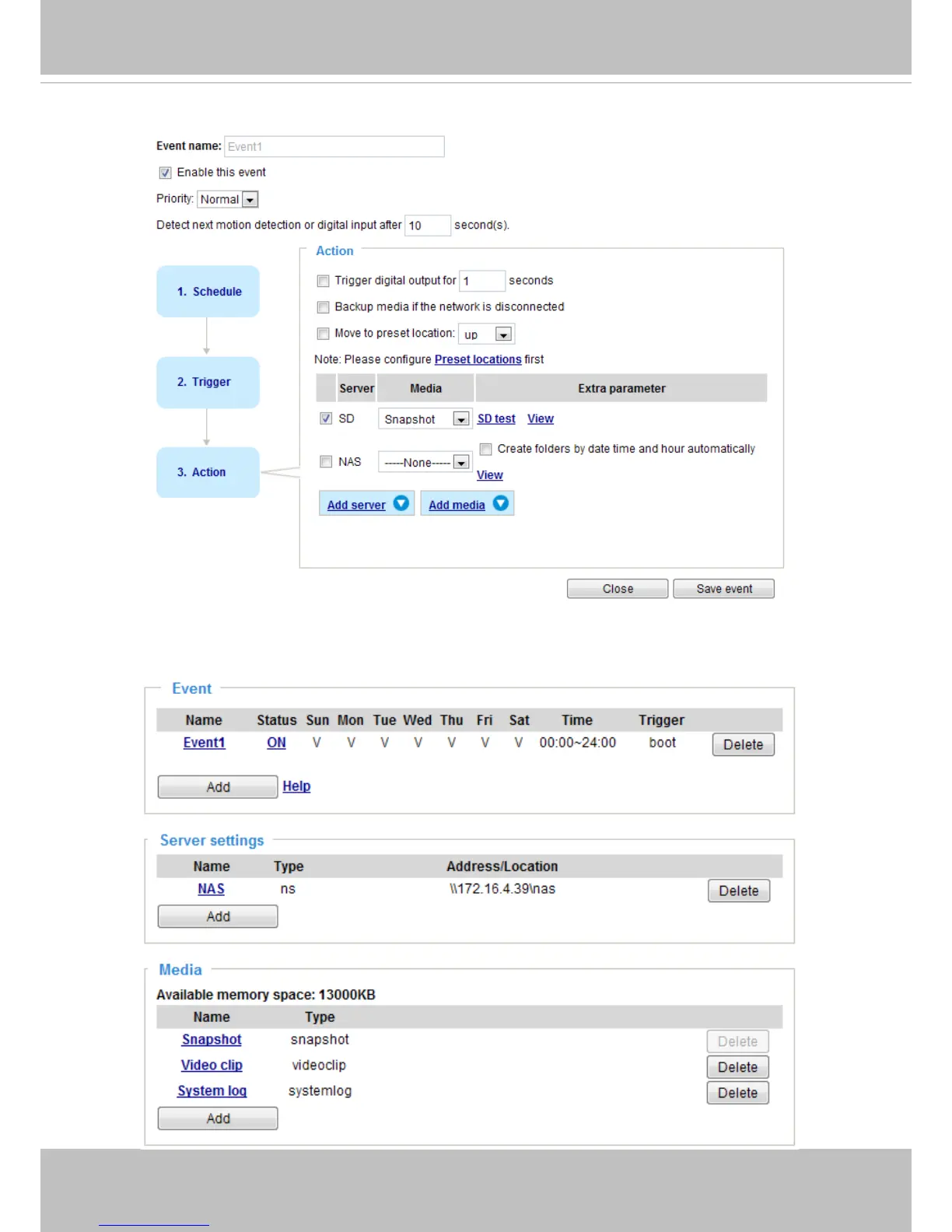 When completed the settings with steps 1~3 to arrange Schedule, Trigger, and Action of an event, click