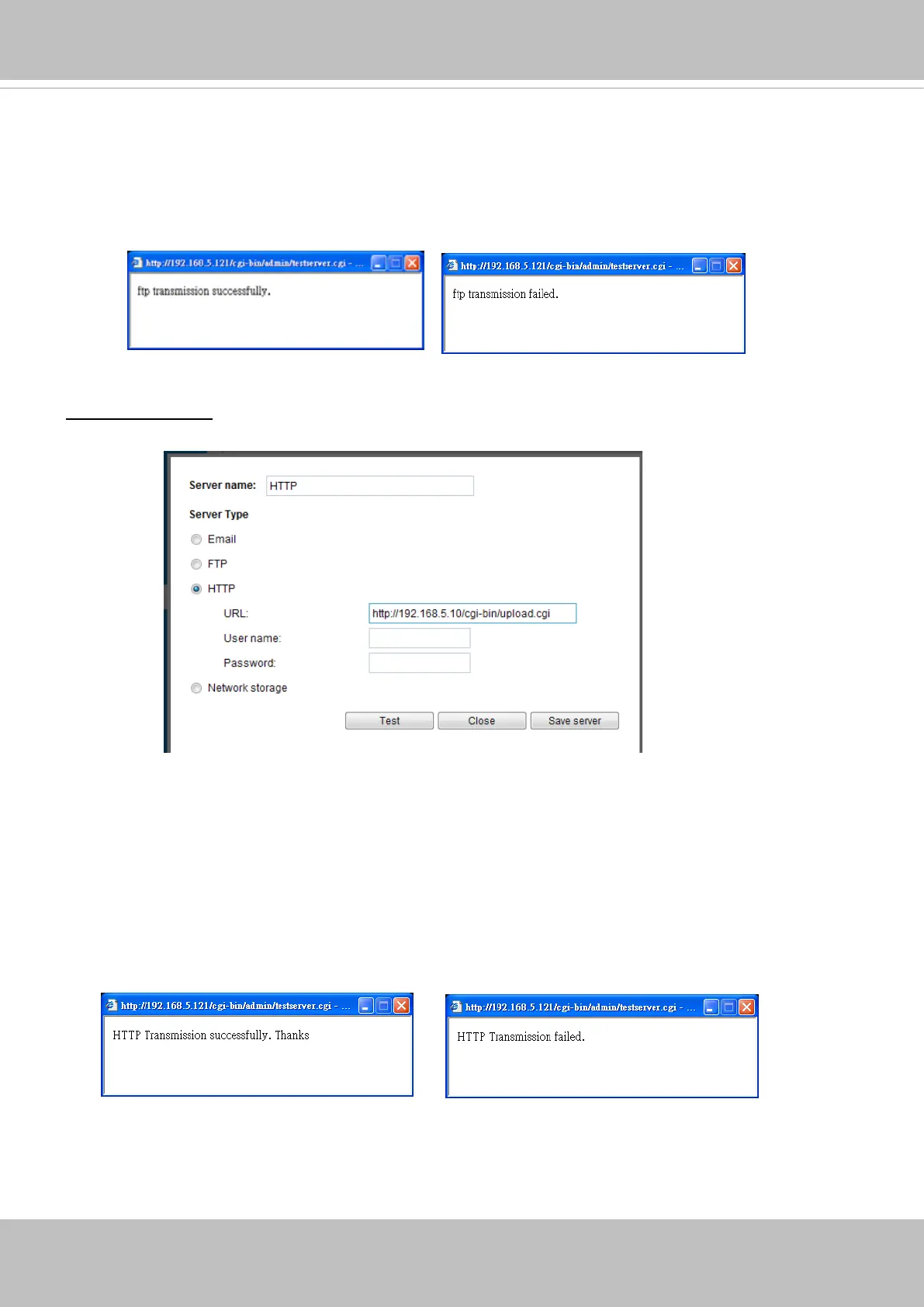 To verify if the FTP settings are correctly congured, click Test. The result will be shown in a pop-up