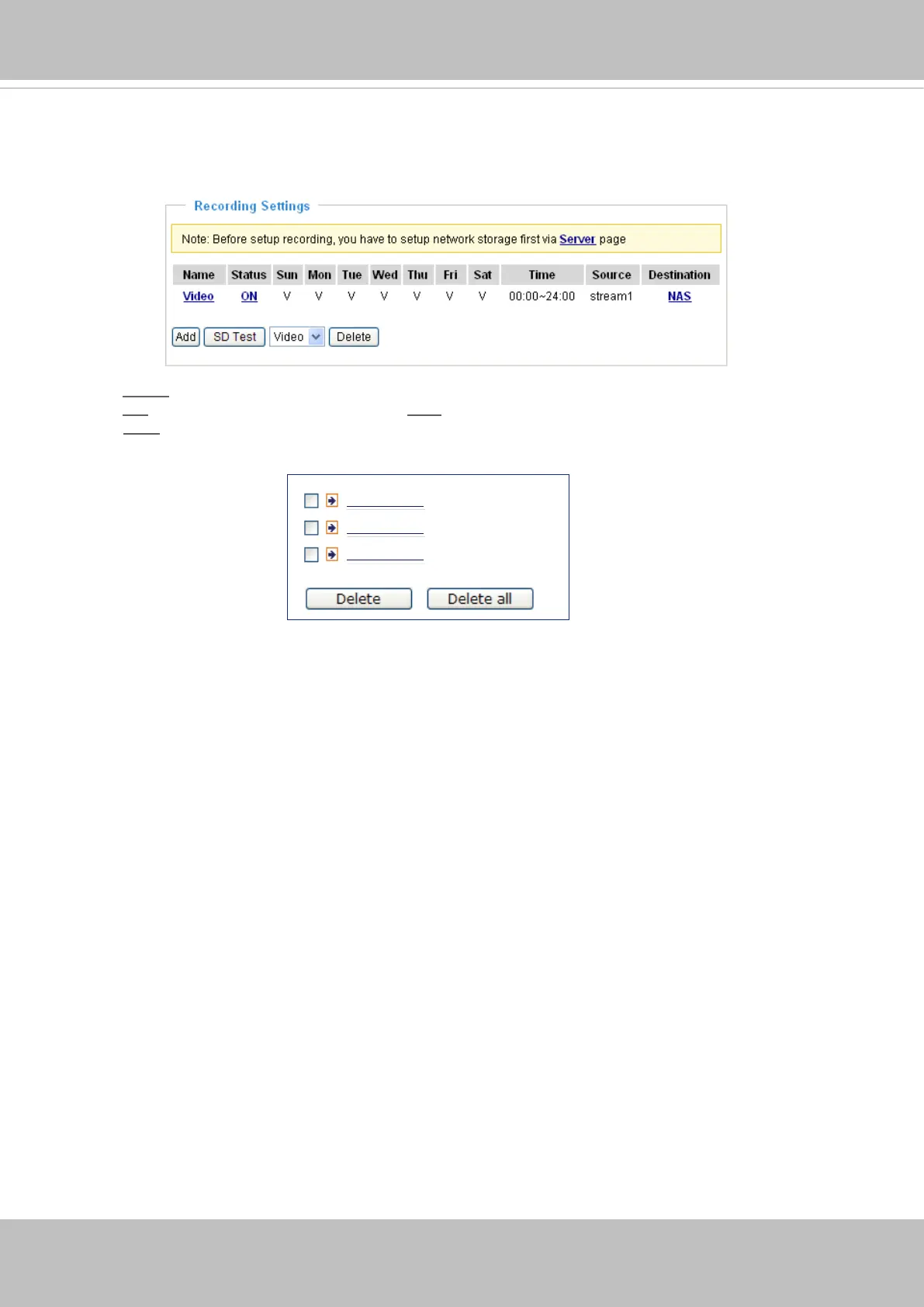 ■ Click NAS (Destination): Opens the le list of recordings as shown below. For more information about