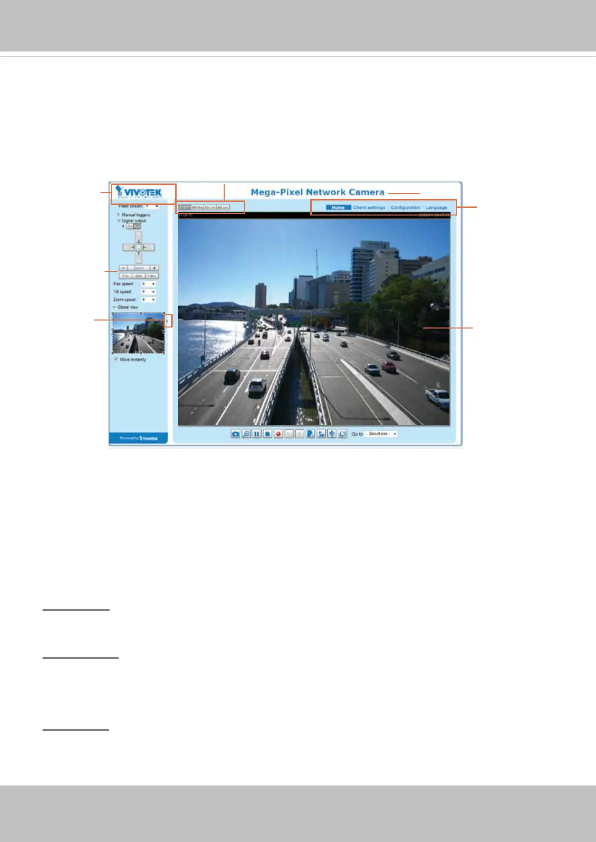 VIVOTEK INC. Logo, Host Name, Camera Control Area, Configuration Area, Menu, and Live