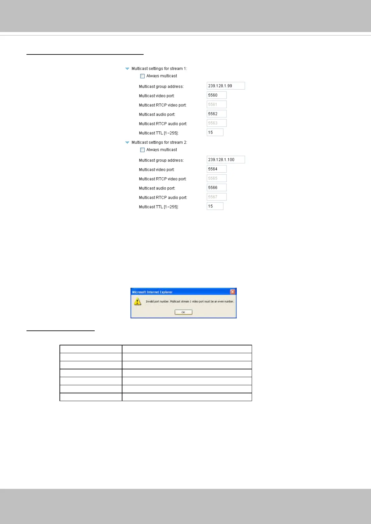 If the multicast RTP video ports are incorrectly assigned, the following warning message will be