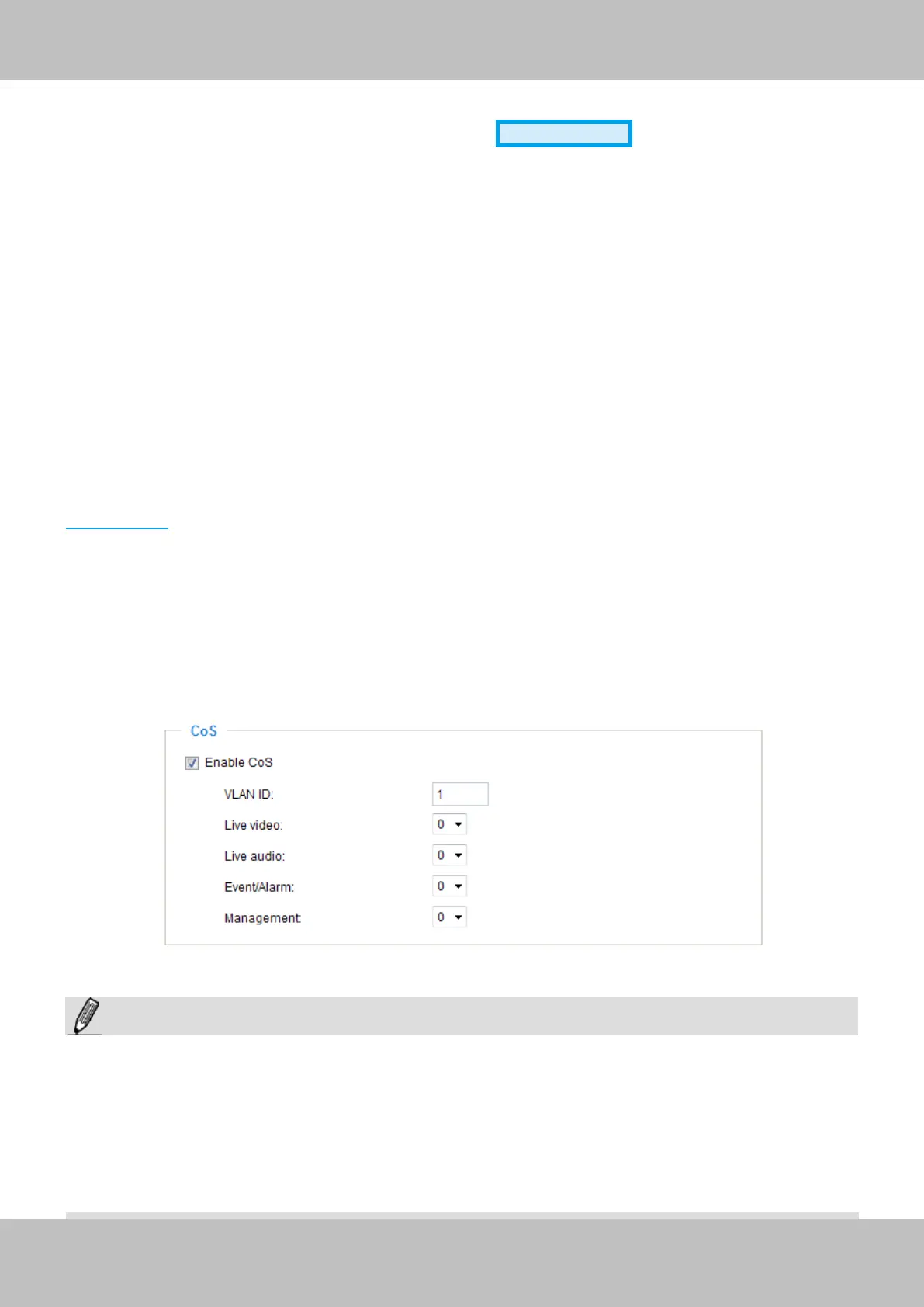 Below is the setting column for CoS. Enter the VLAN ID of your switch (0~4095) and choose the priority