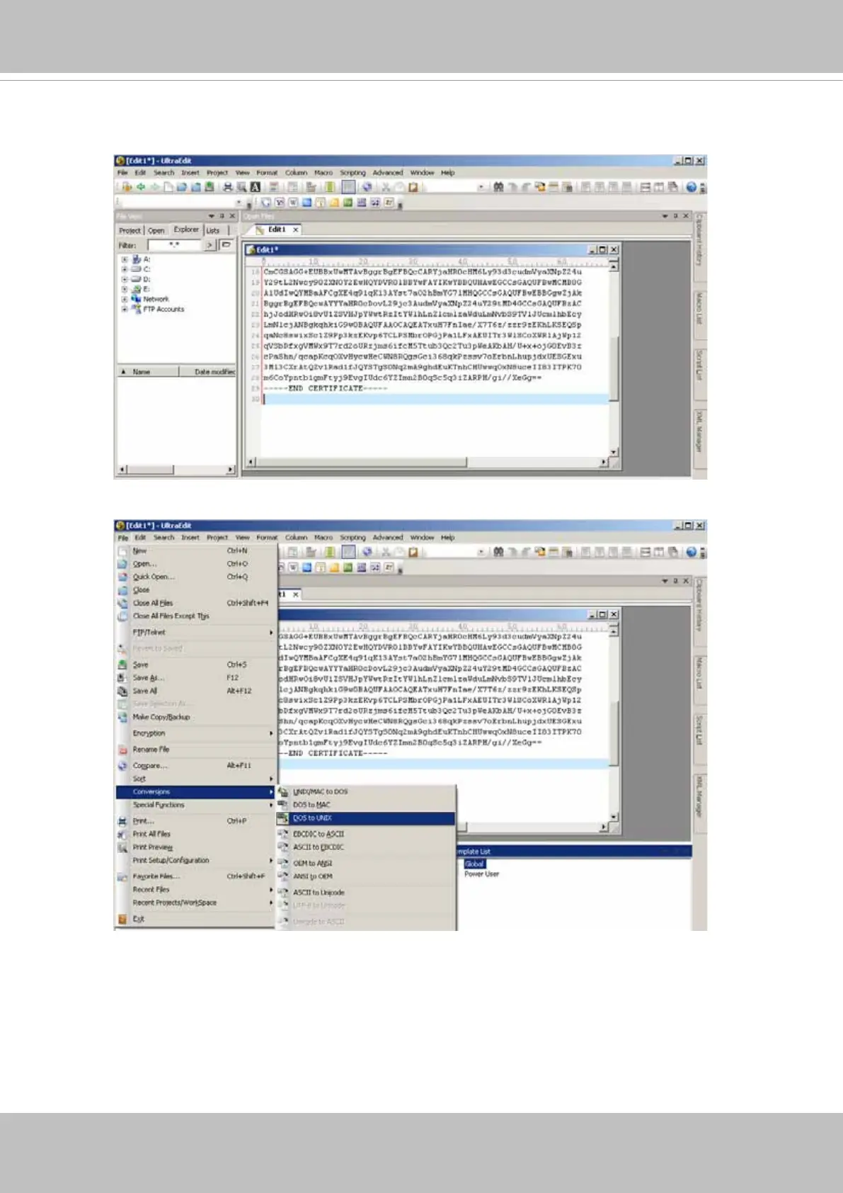 8. Convert le format from DOS to UNIX. Open File menu > Conversions > DOS to Unix.