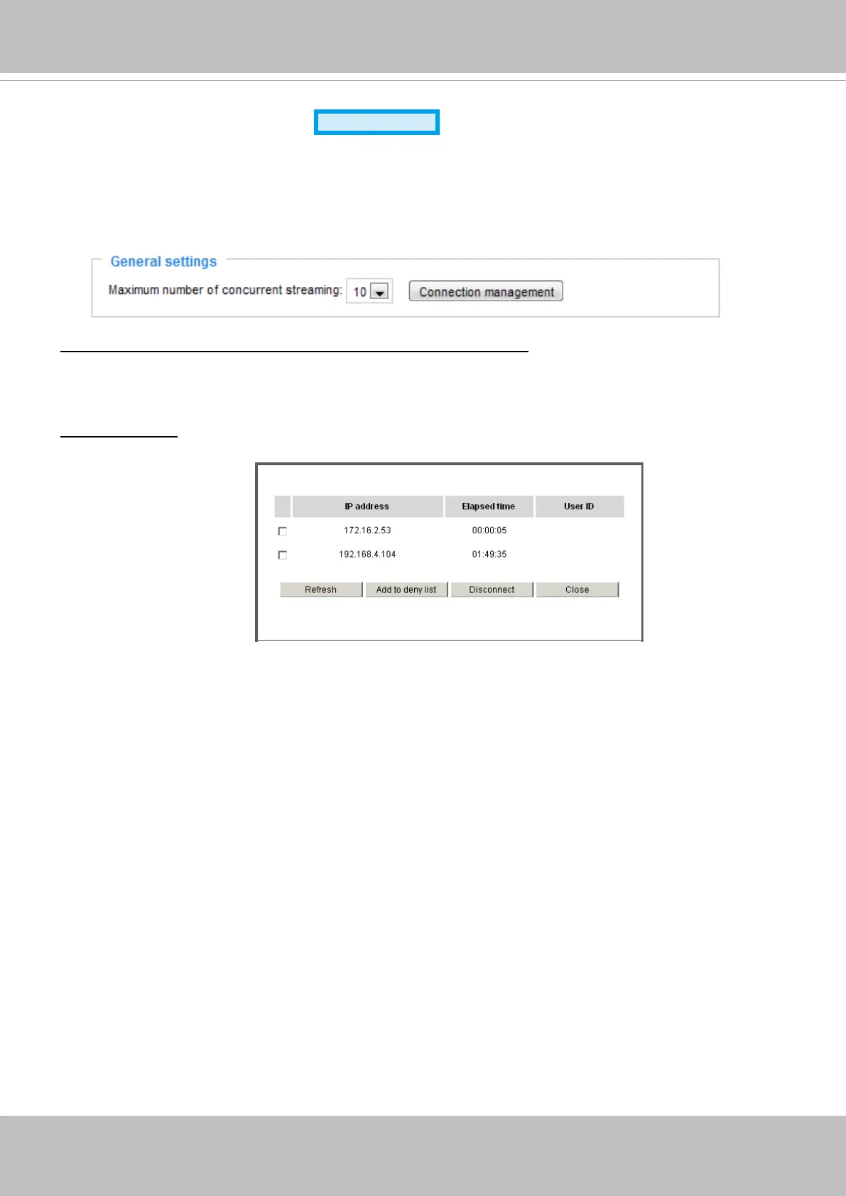 ■ IP address: Current connections to the Network Camera.