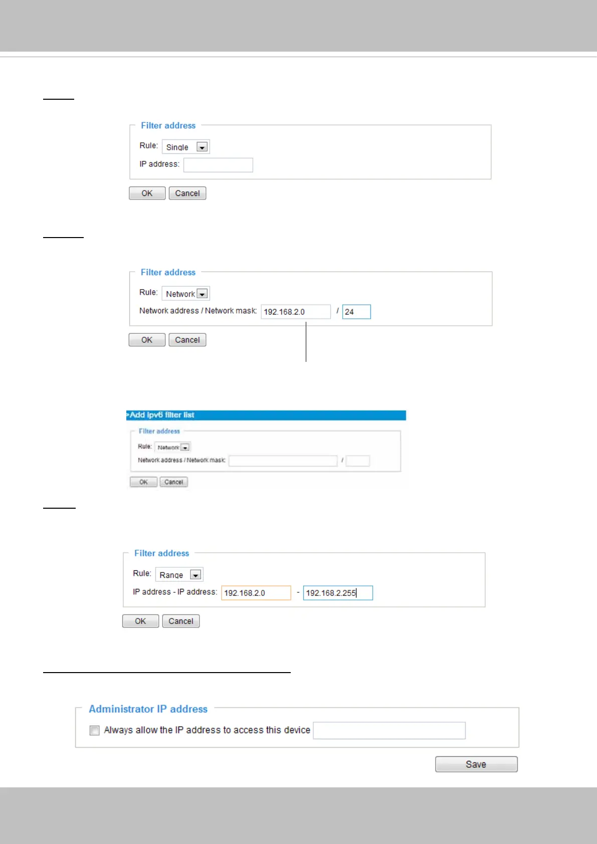 IP address in this eld to make sure the Administrator can always connect to the device.