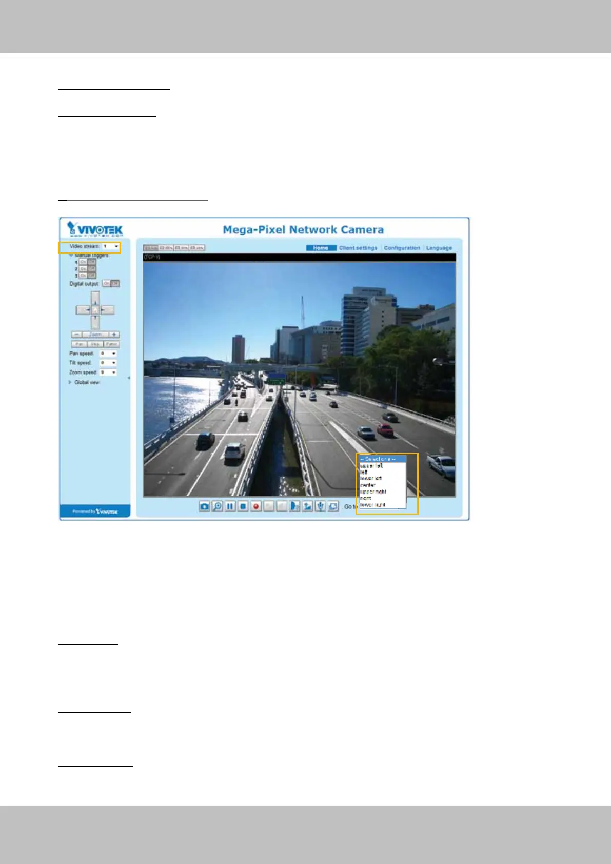 If you have set up different e-preset positions for stream 1~3, you can select one of the video