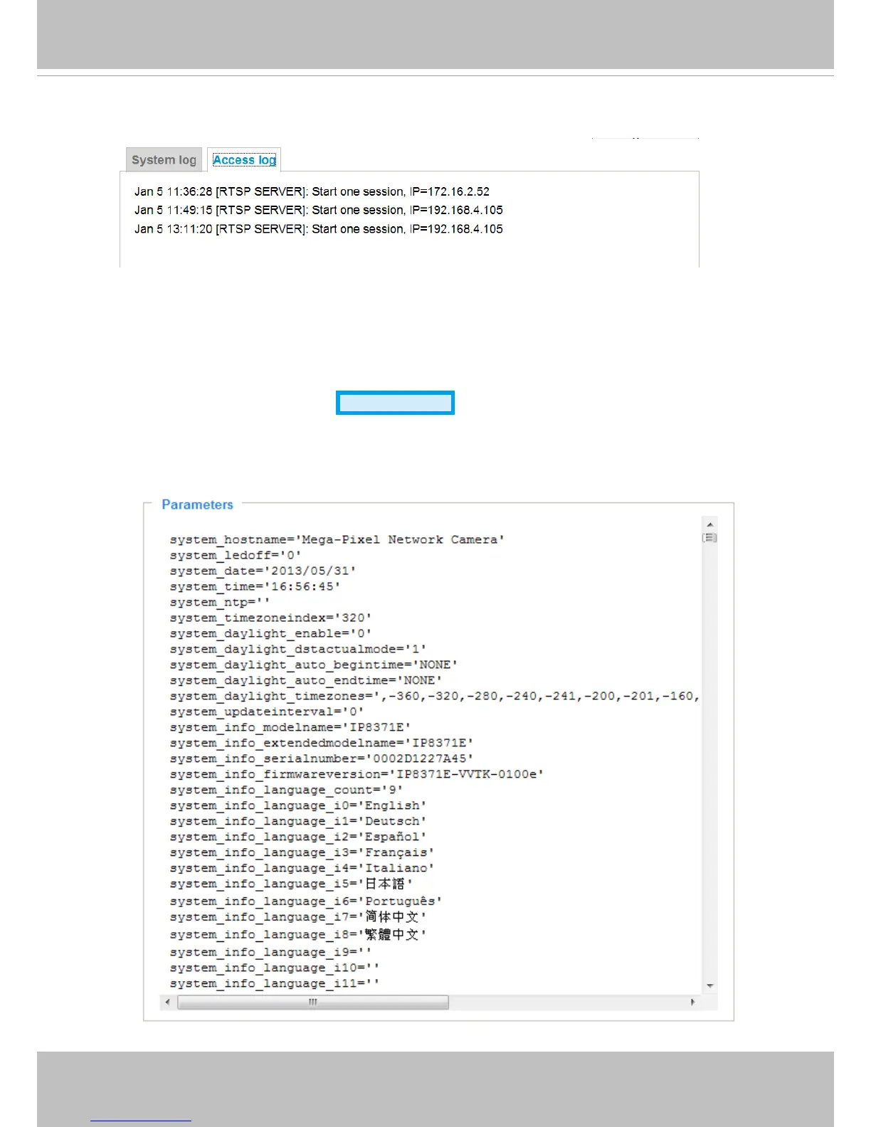 administrators) in a chronological order. The access log is stored in the Network Camera’s buffer