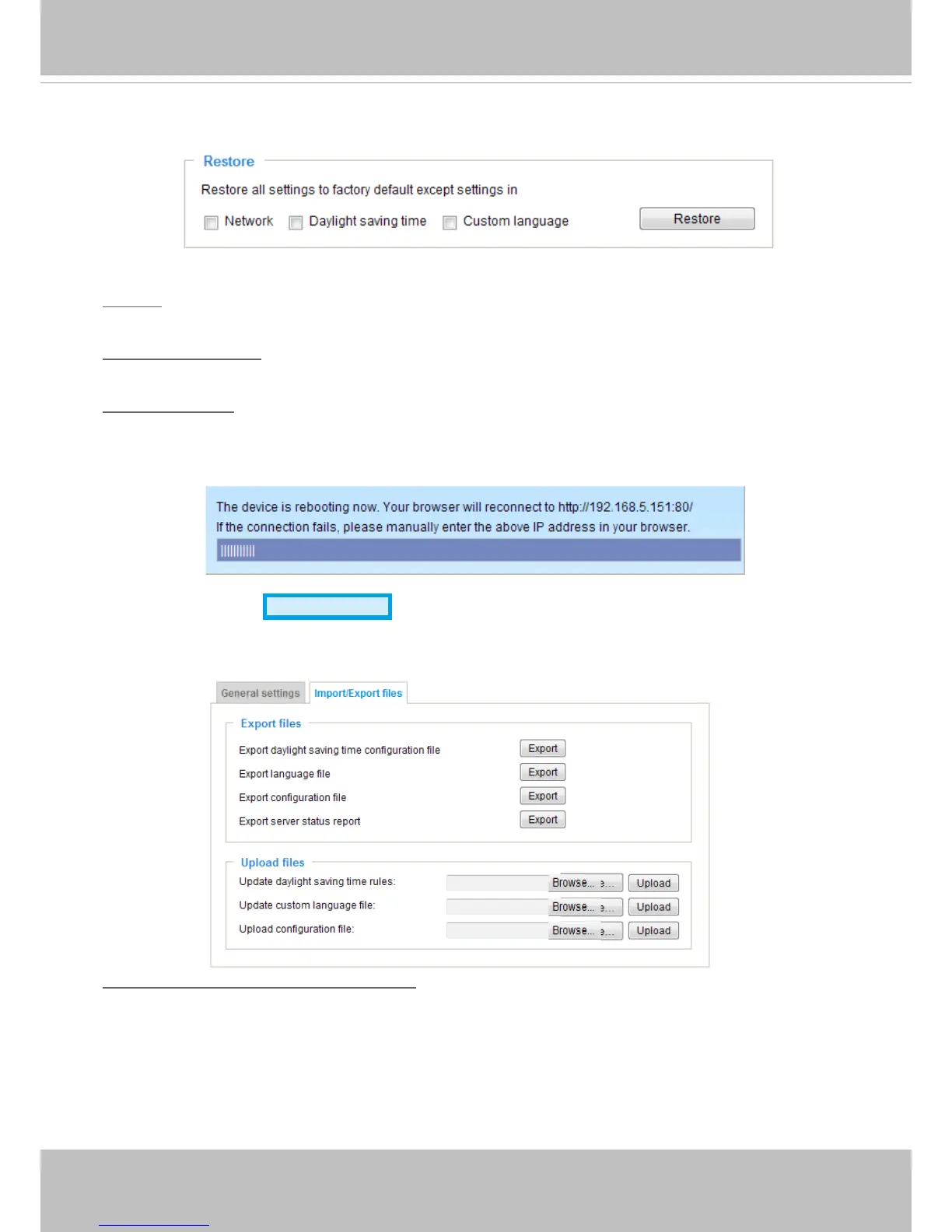 This feature allows you to Export / Update daylight saving time rules, custom language le, conguration
