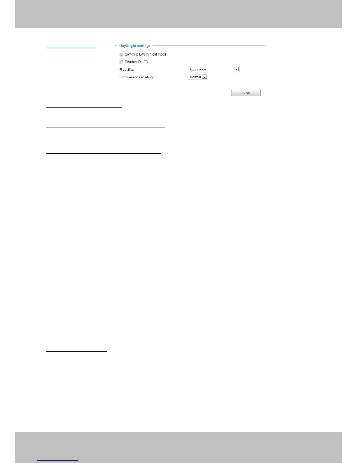 schedule. Enter the start and end time for day mode. Note that the time format is [hh:mm] and is