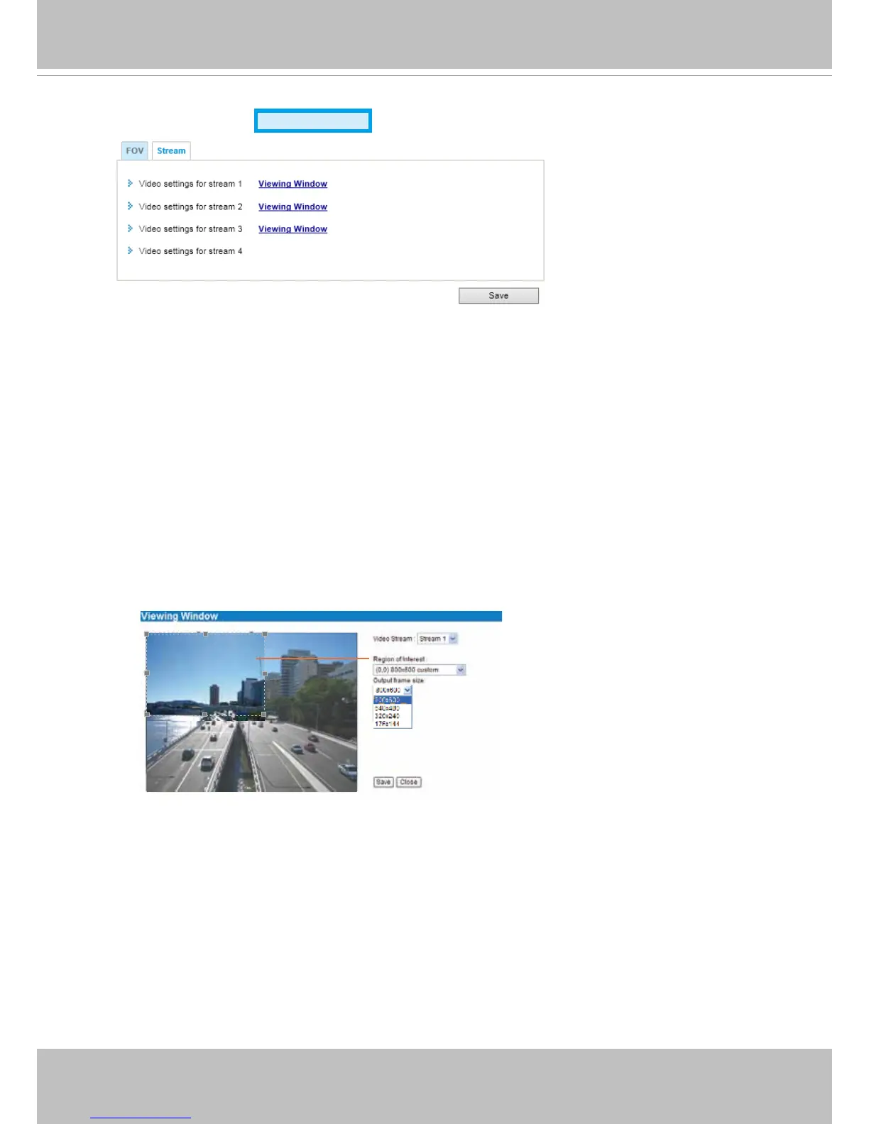 ■ Stream 2: Users can dene the "Region of Interest" (viewing region) and the "Output Frame size"