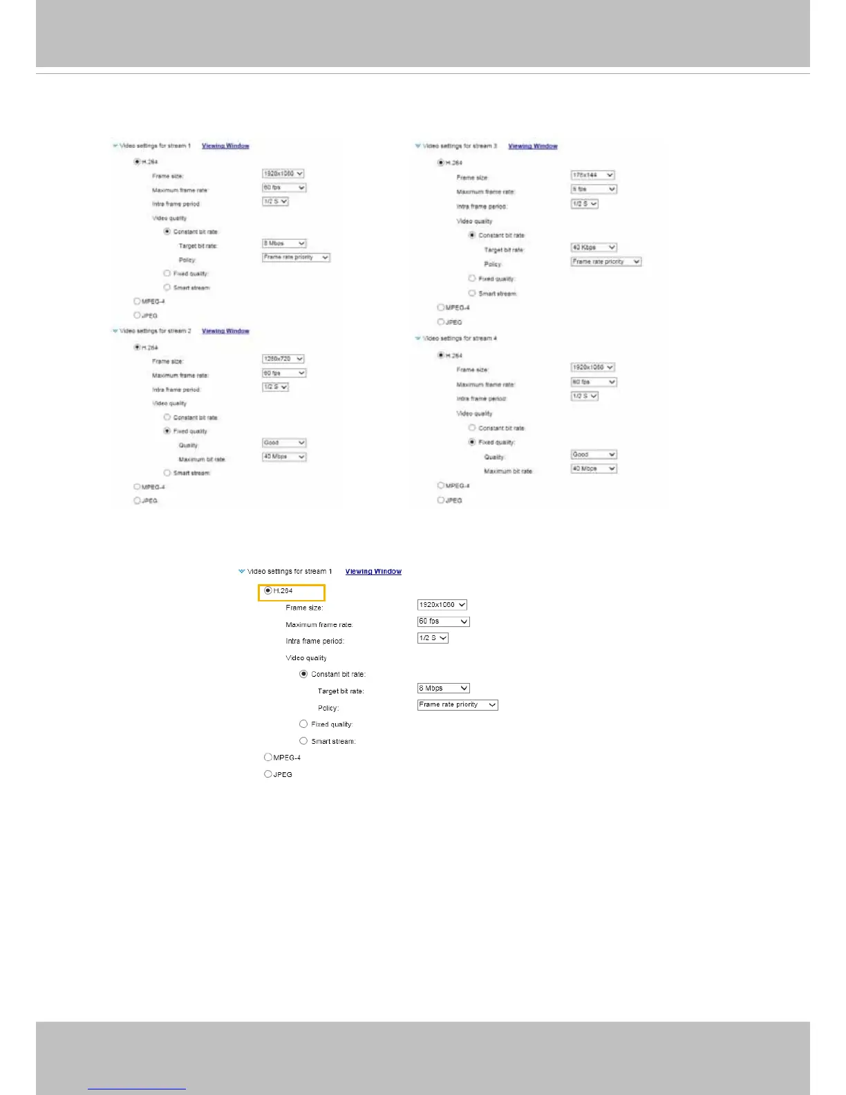 bandwidth. By default, stream #3 is down-sized to 176x144 for monitoring on hand-held devices.