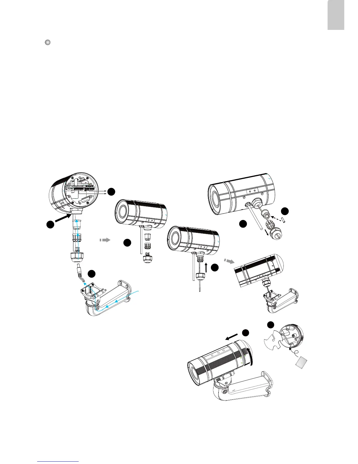 bracket and the waterproof connector (E --> D --> B --> A) as the illustration shown below. Then