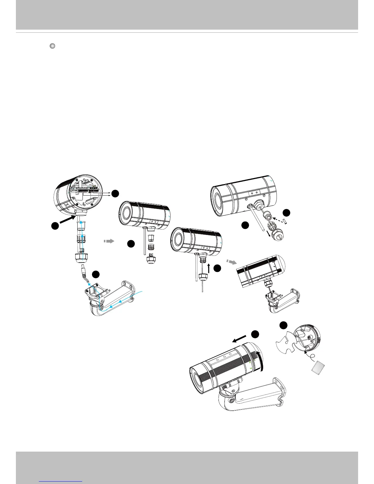 wall mount bracket and the waterproof connector (E --> D --> B --> A) as the illustration
