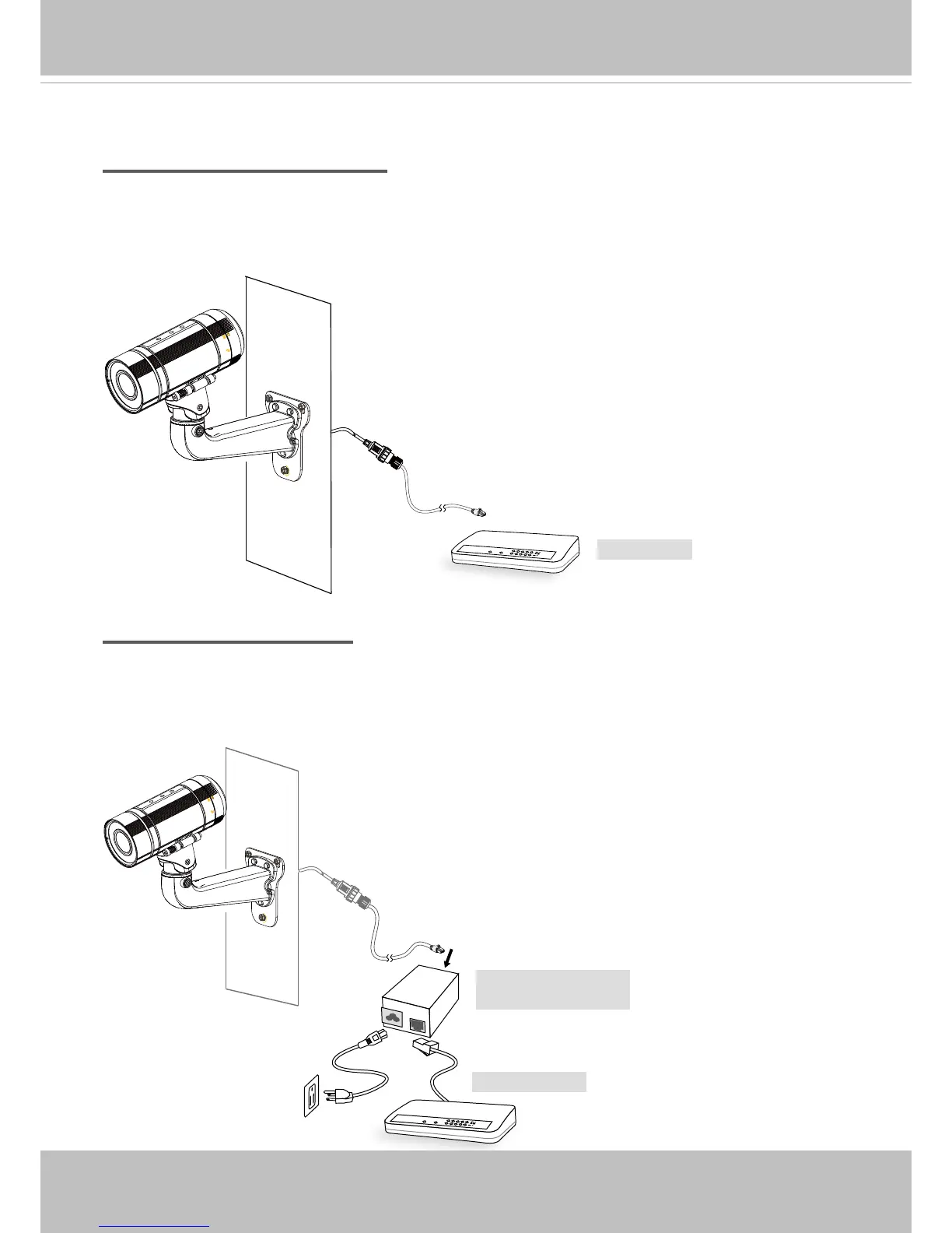 Ethernet cable. Follow the below illustration to connect the Network Camera to a PoE-enabled