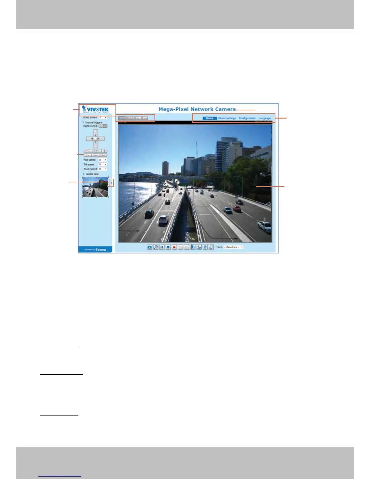 VIVOTEK INC. Logo, Host Name, Camera Control Area, Configuration Area, Menu, and Live