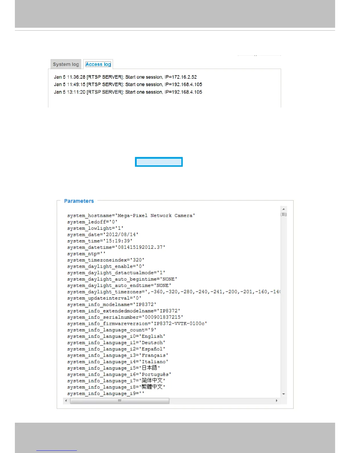 administrators) in a chronological order. The access log is stored in the Network Camera’s buffer