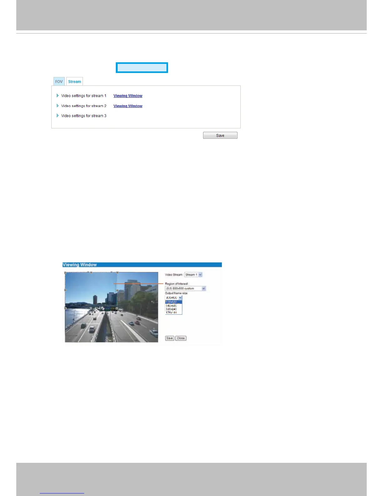 ■ Stream 1: Users can dene the "Region of Interest" (viewing region) and the "Output Frame size"