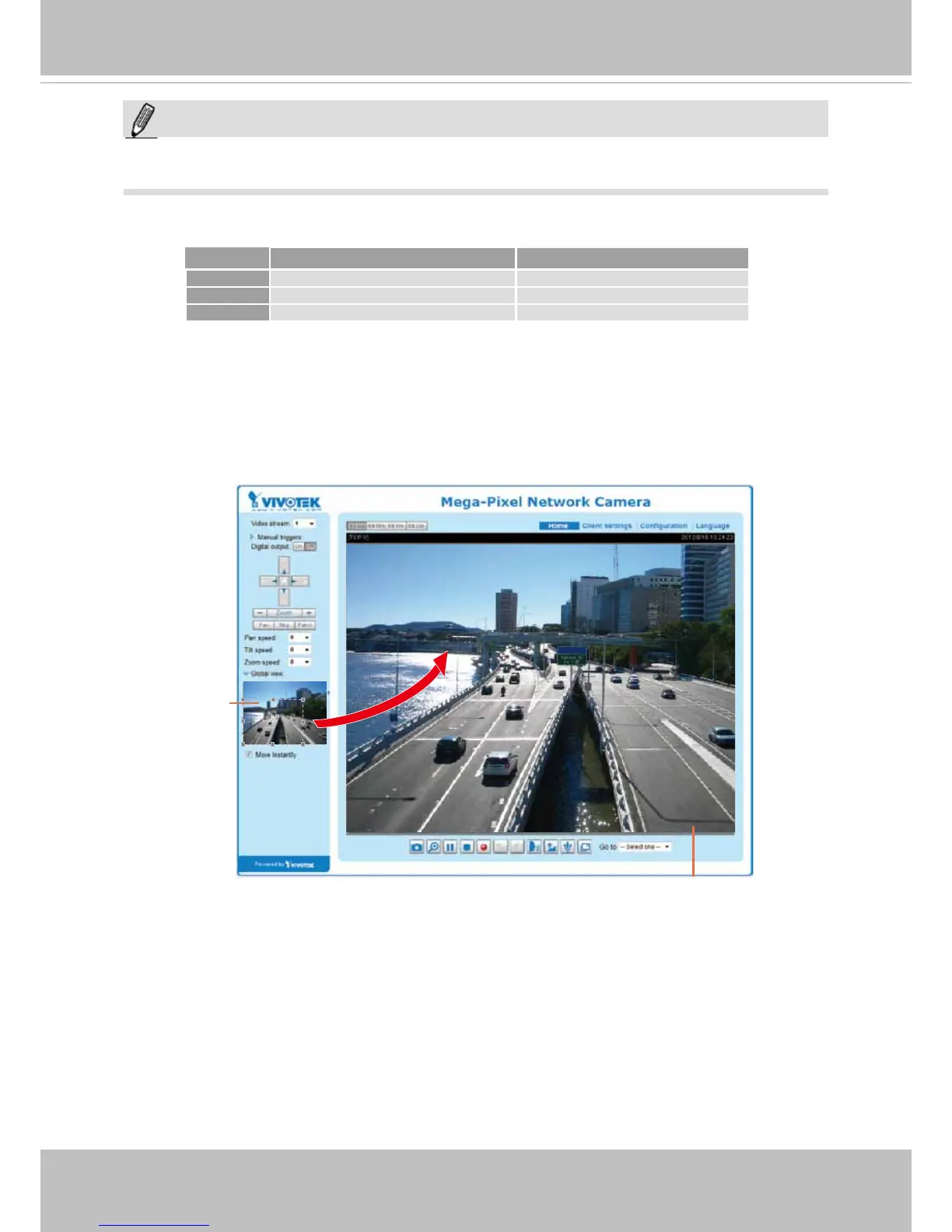 the Frame size of each video stream. Then you can go back to the home page to test the e-PTZ
