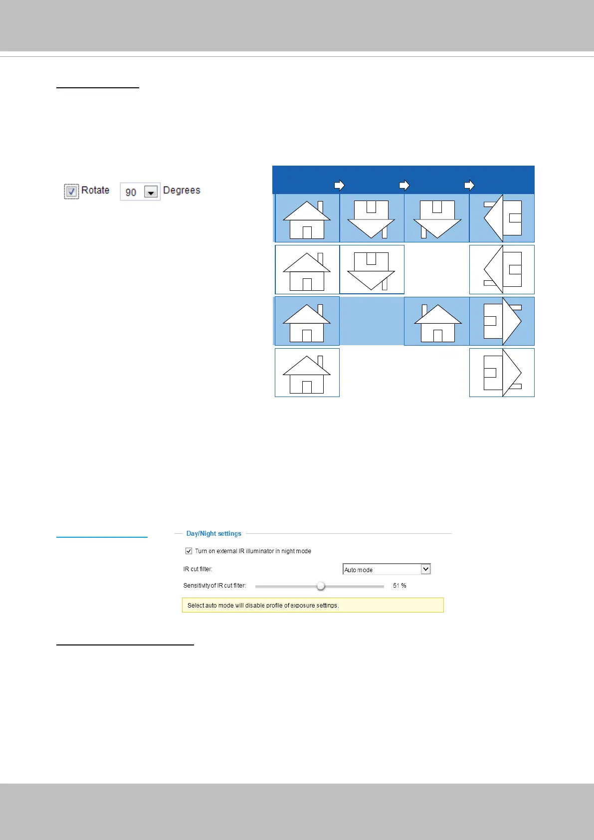 on the ceiling) to correct the image orientation. Please note that if you have preset locations, those