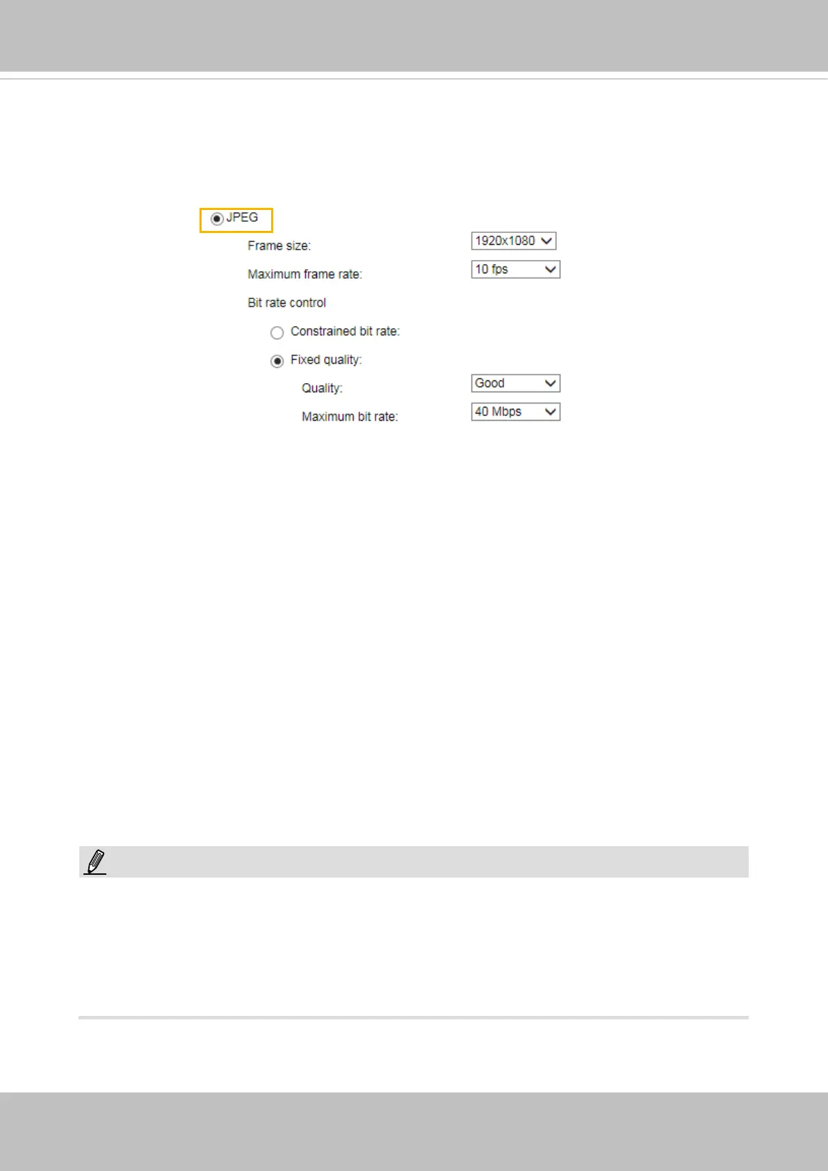 bandwidth consumed for transmitting motion jpegs. The conguration method is identical to that