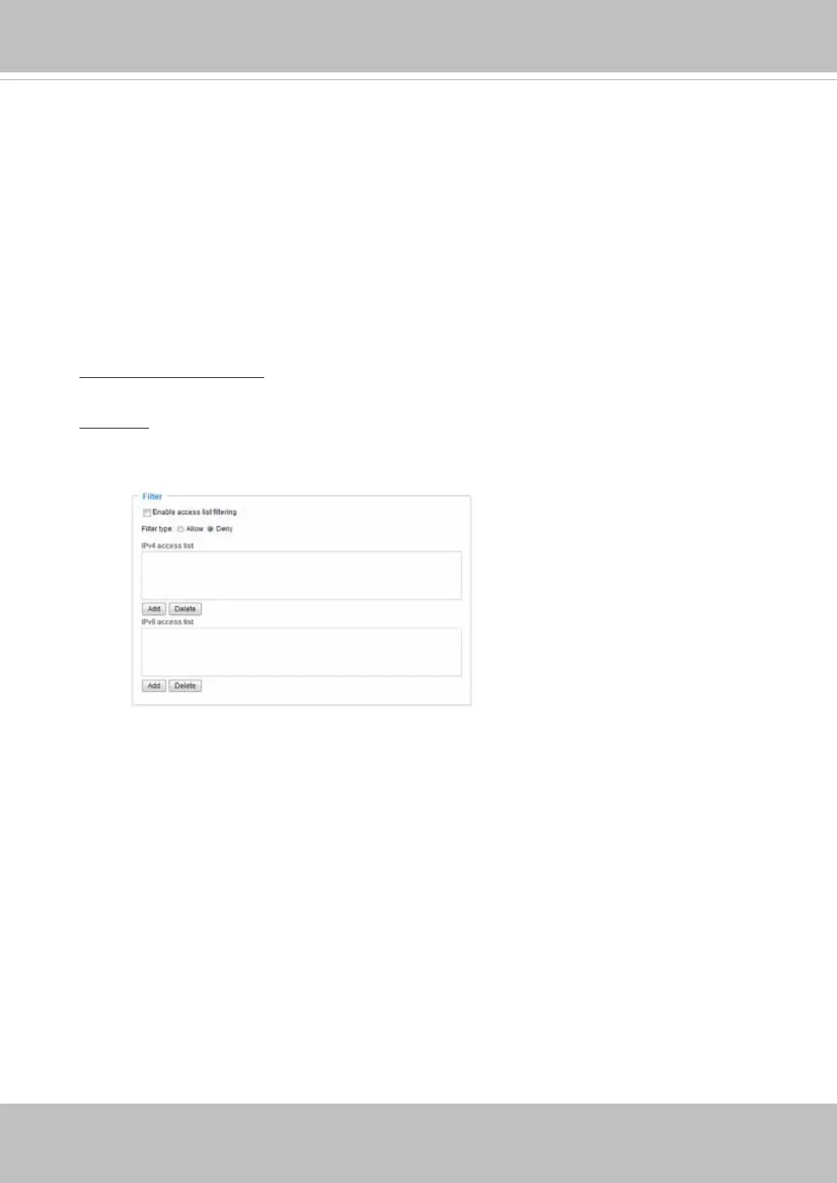 Enable access list ltering: Check this item and click Save if you want to enable the access list