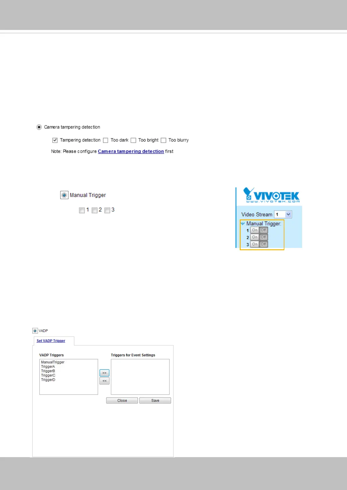 This option allows the Network Camera to trigger when the camera detects that is is being tampered