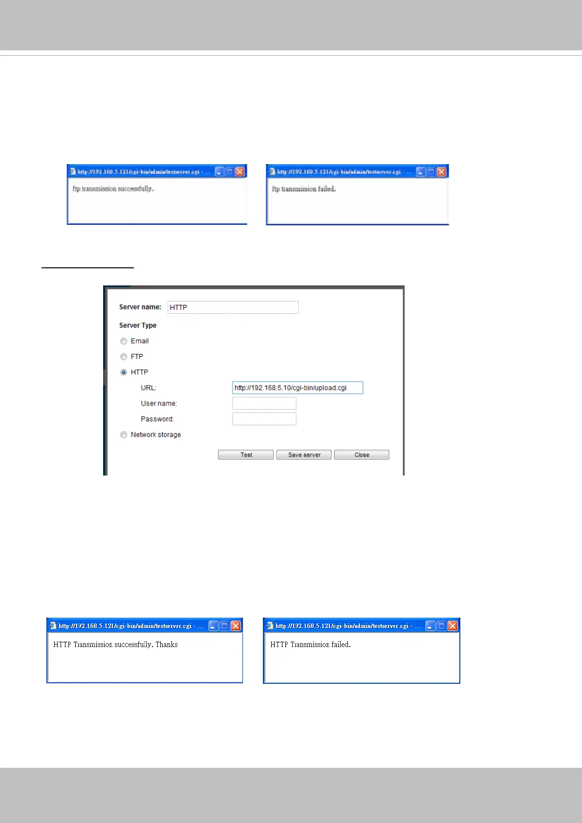 To verify if the FTP settings are correctly congured, click Test. The result will be shown in a pop-up