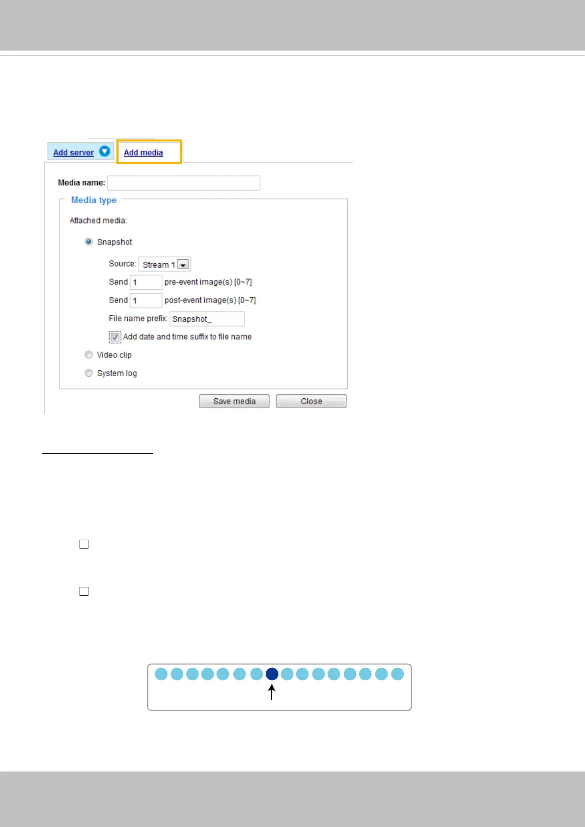 of media types available: Snapshot, Video Clip, and System log.