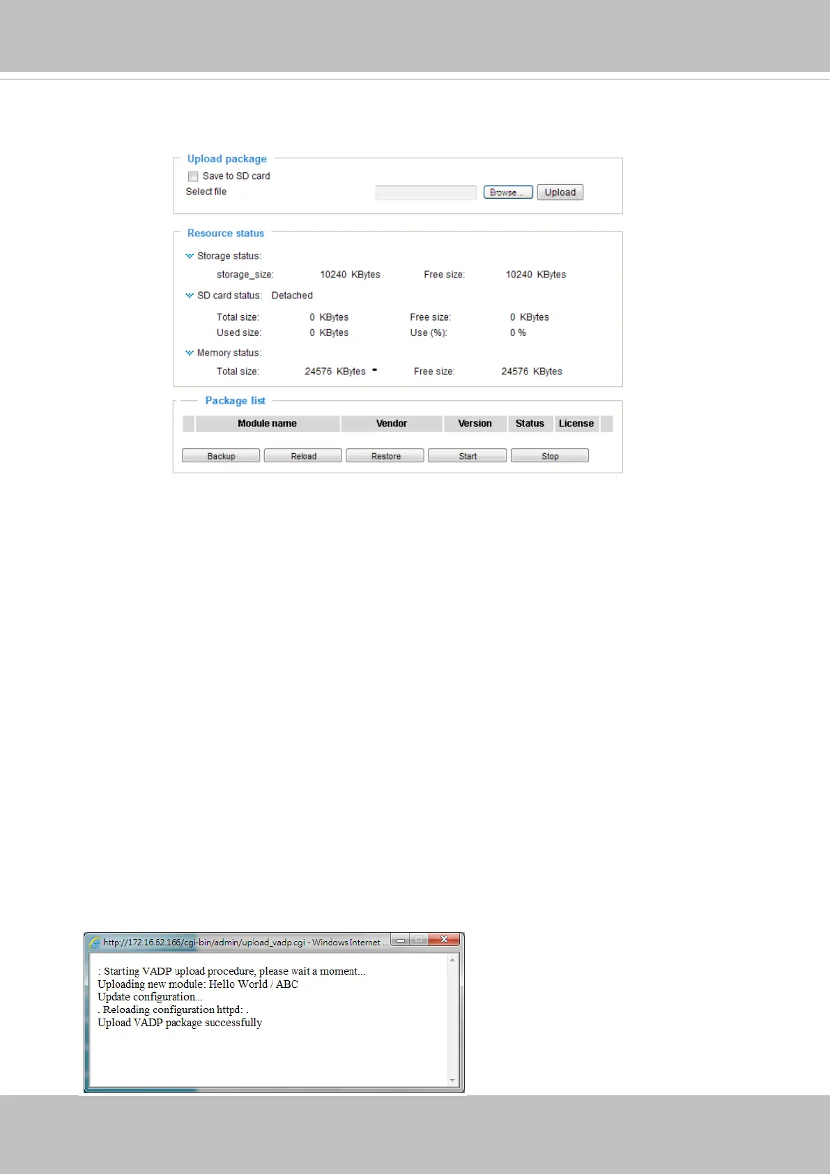 • Once the software package is successfully uploaded, the module conguration (vadp.