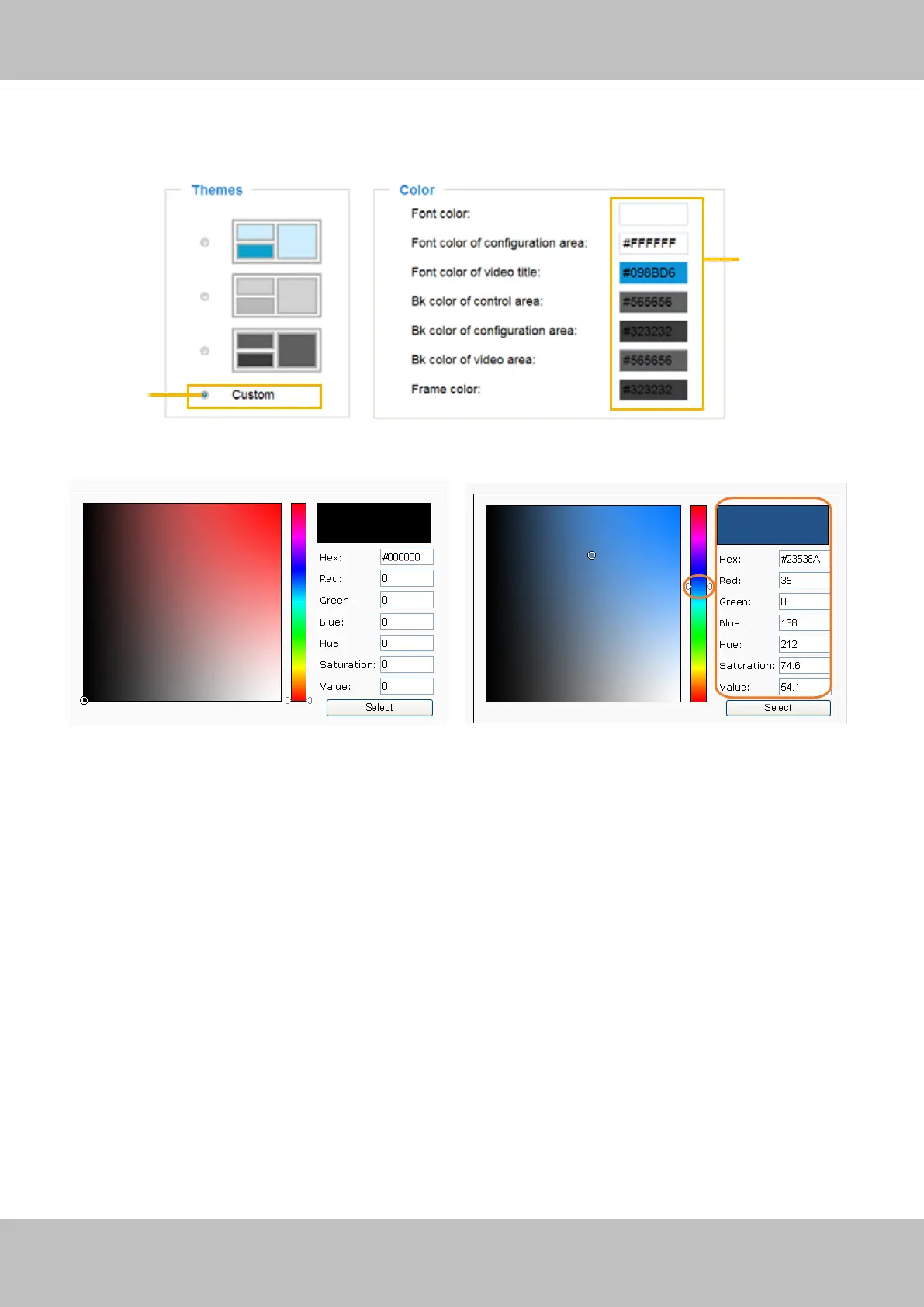 5. The selected color will be displayed in the corresponding elds and in the Preview column.