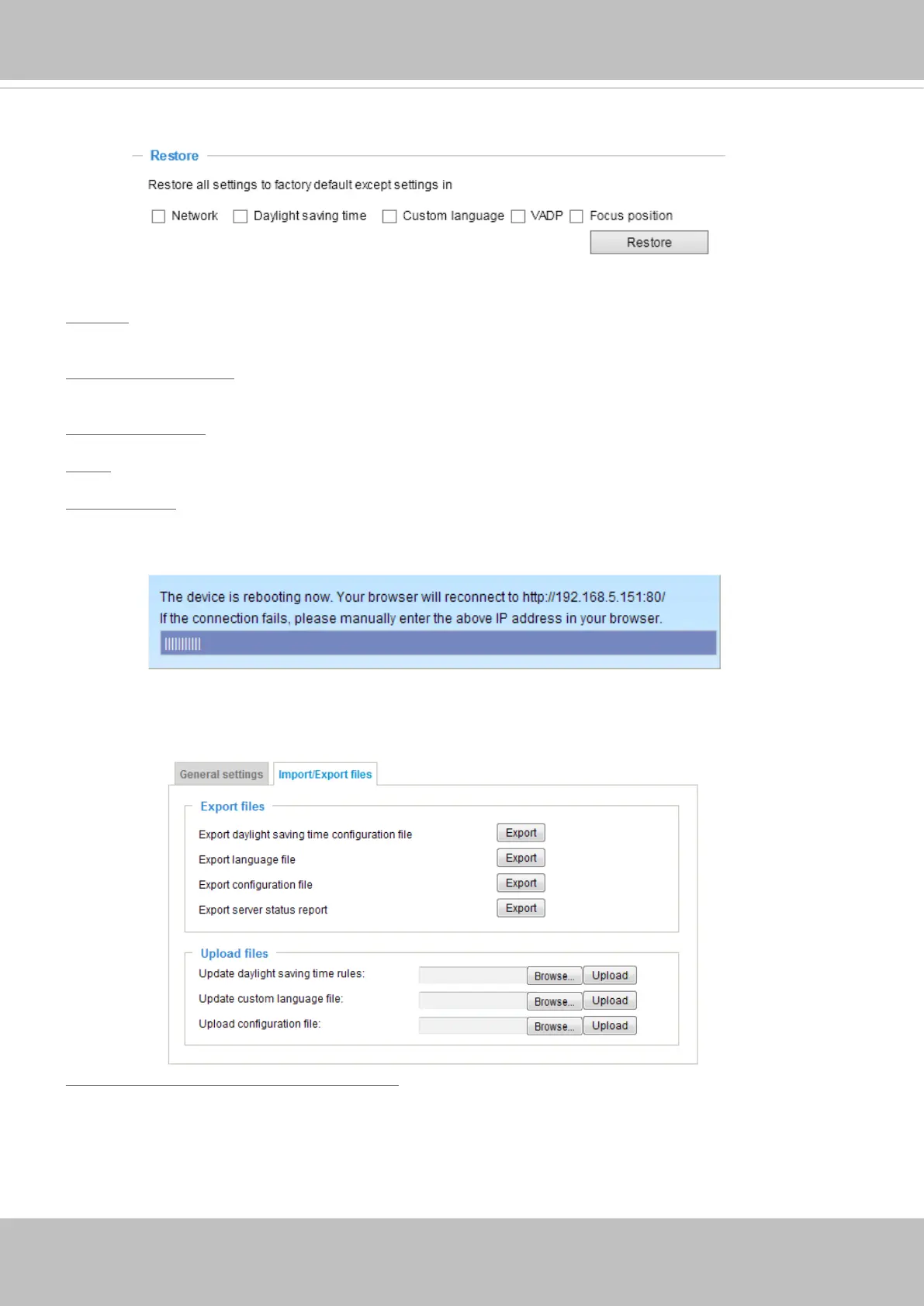 This feature allows you to Export / Update daylight saving time rules, custom language le, conguration