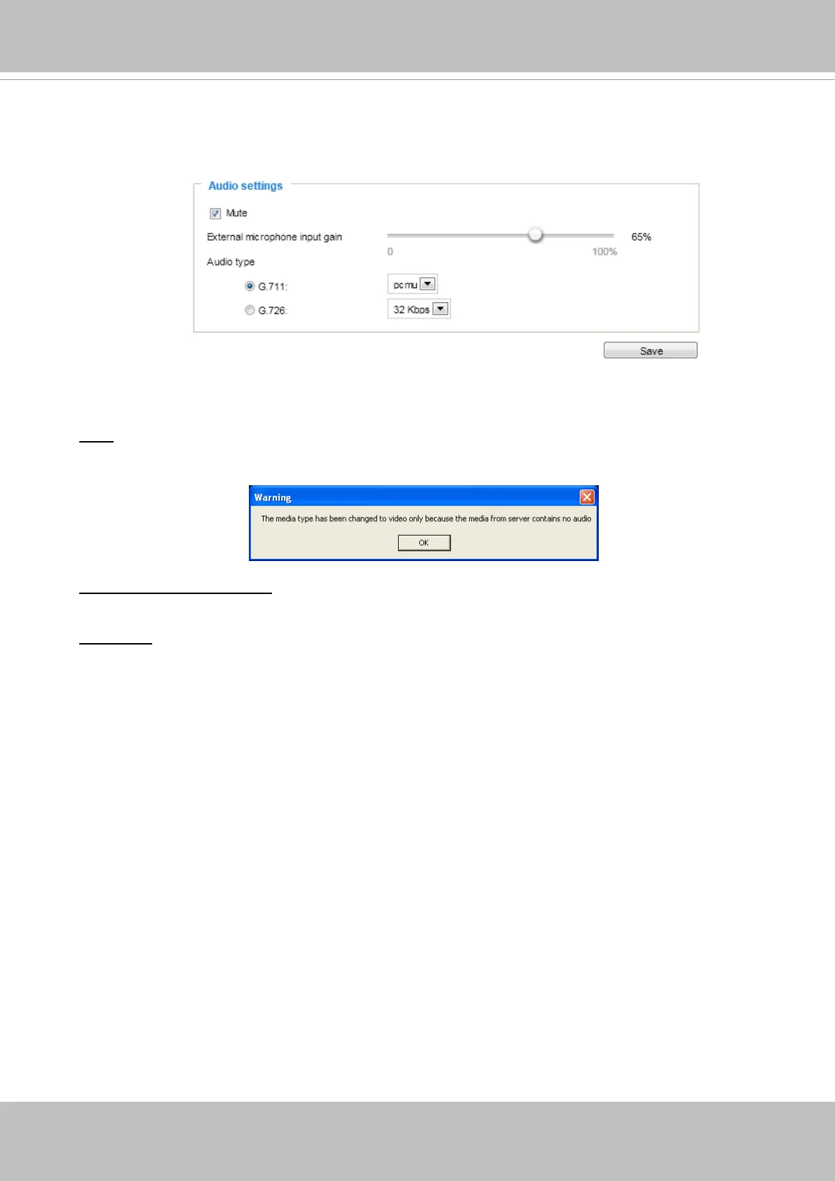 Mute: Select this option to disable audio transmission from the Network Camera to all clients. Note