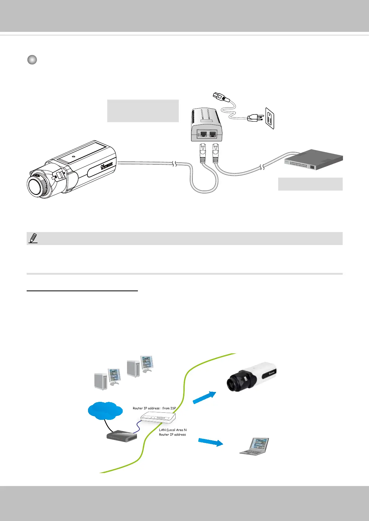 Use a PoE power injector (optional) to connect between the Network Camera and a non-