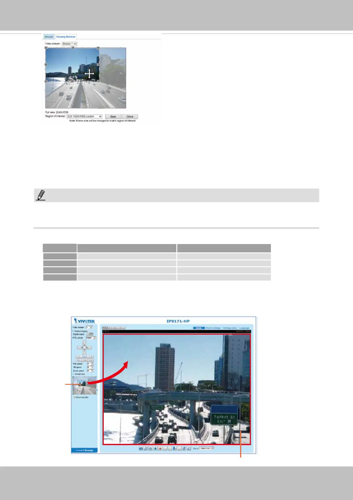 the Frame size of each video stream. Then you can go back to the home page to test the e-PTZ