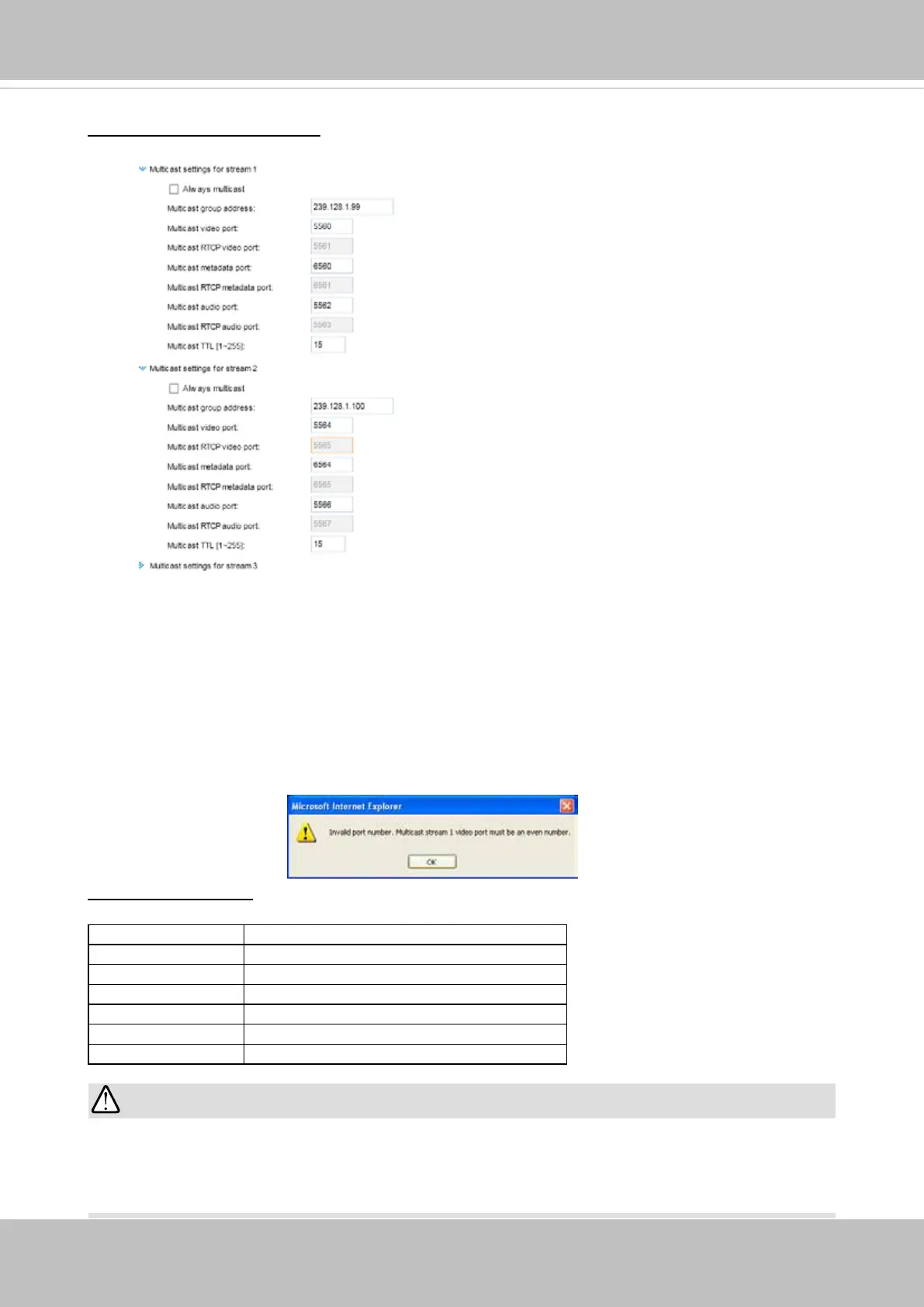 If the multicast RTP video ports are incorrectly assigned, the following warning message will be