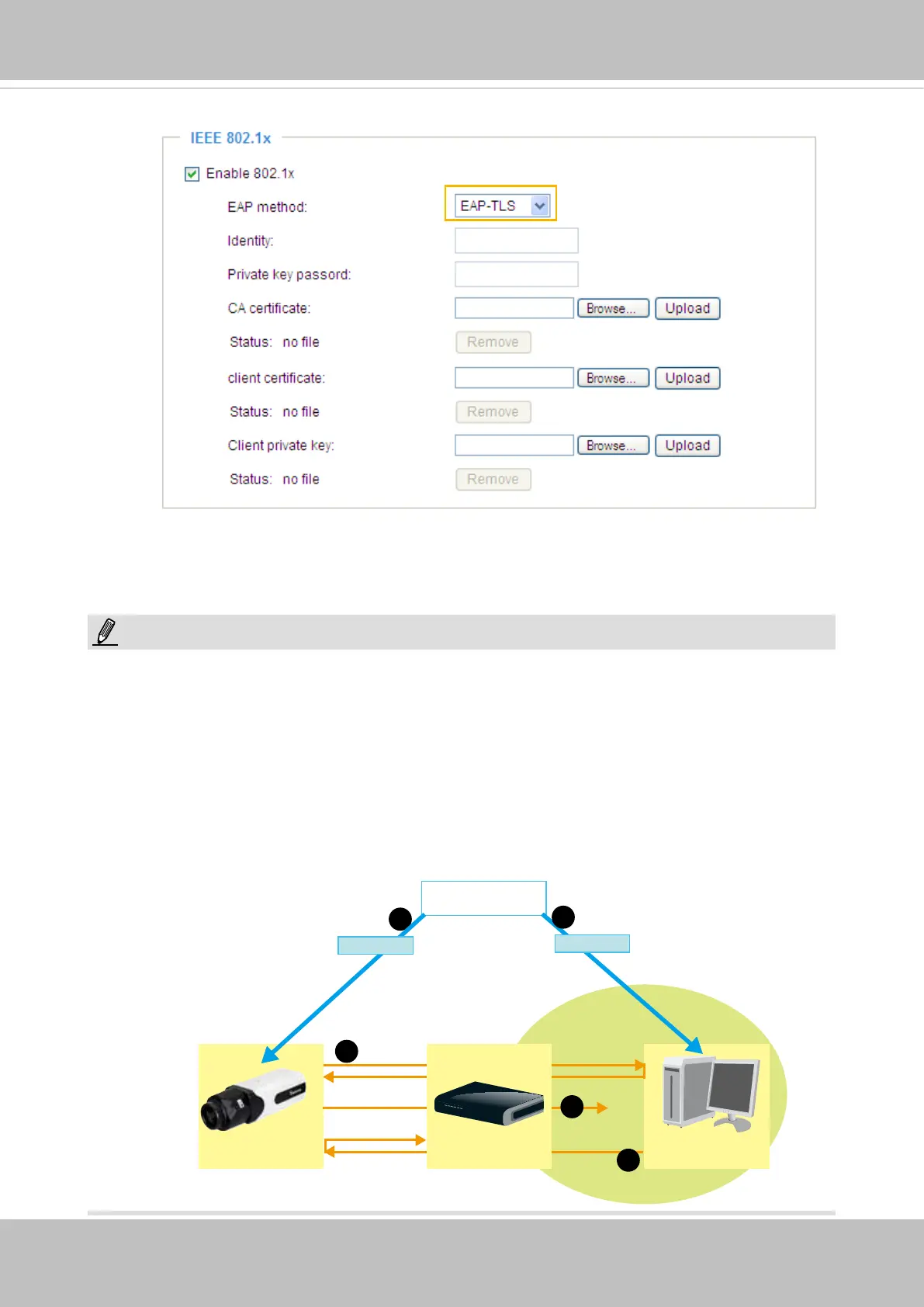 3. The switch also forwards the RADIUS Server’s certicate to the Network Camera.