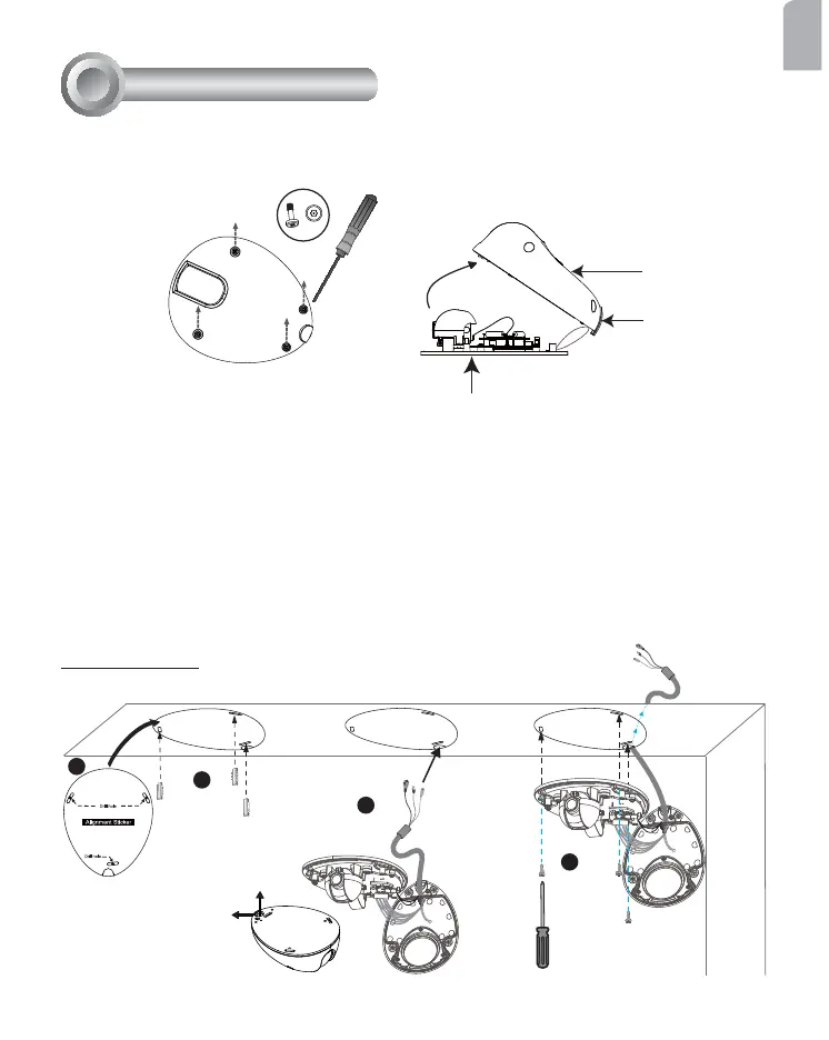 First, use the supplied screwdriver to detach the dome cover from the camera base. Insert your