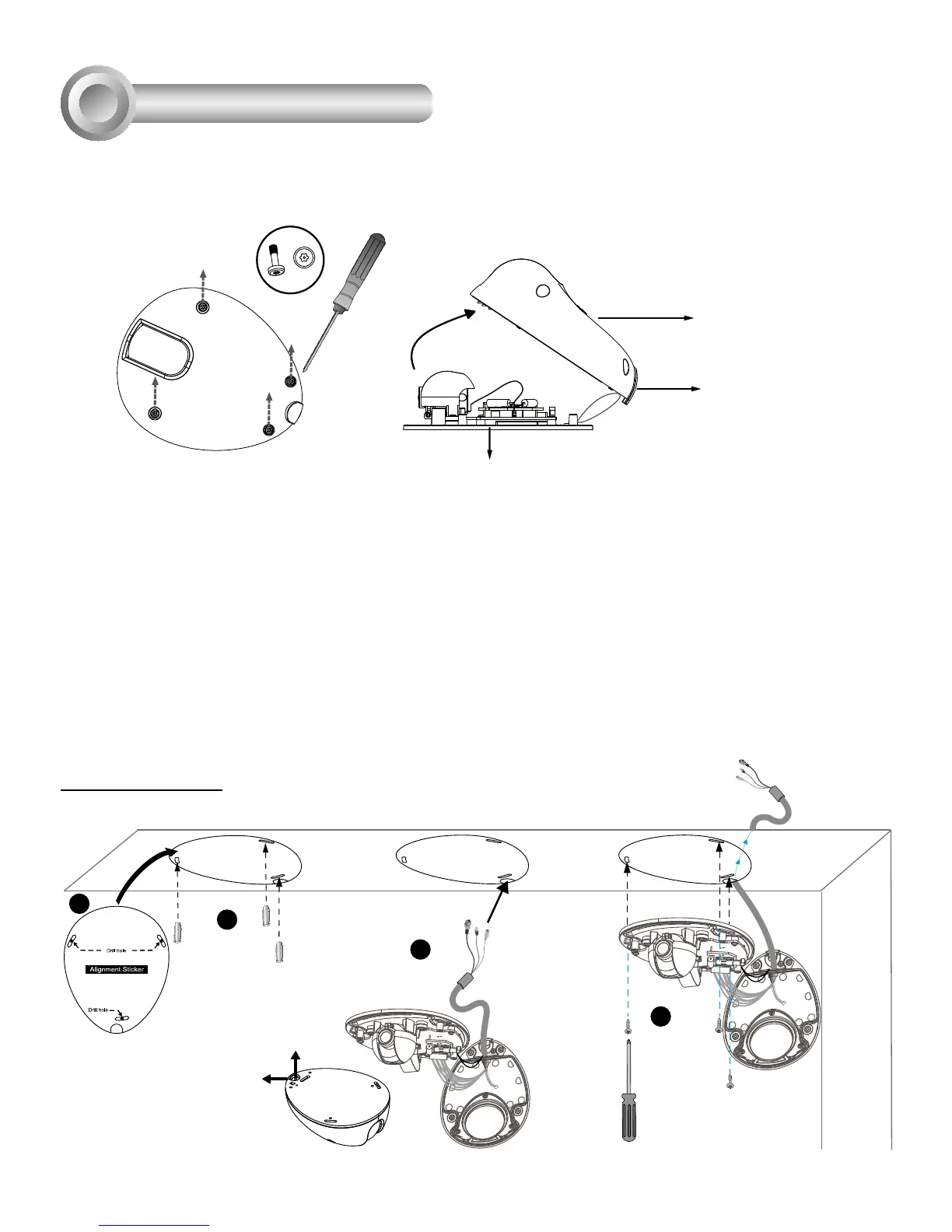 First, use the supplied screwdriver to detach the dome cover from the camera base. Insert your