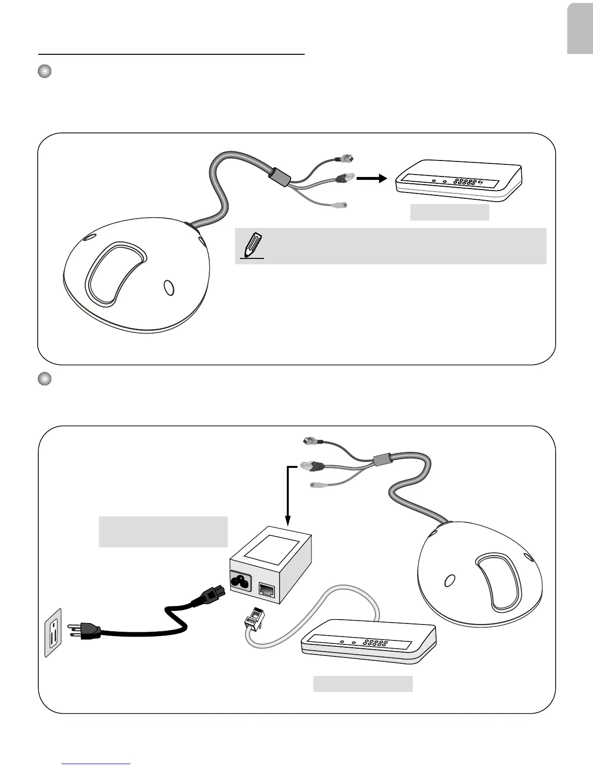 Use a PoE power injector (optional) to connect between the Network Camera and a non-PoE