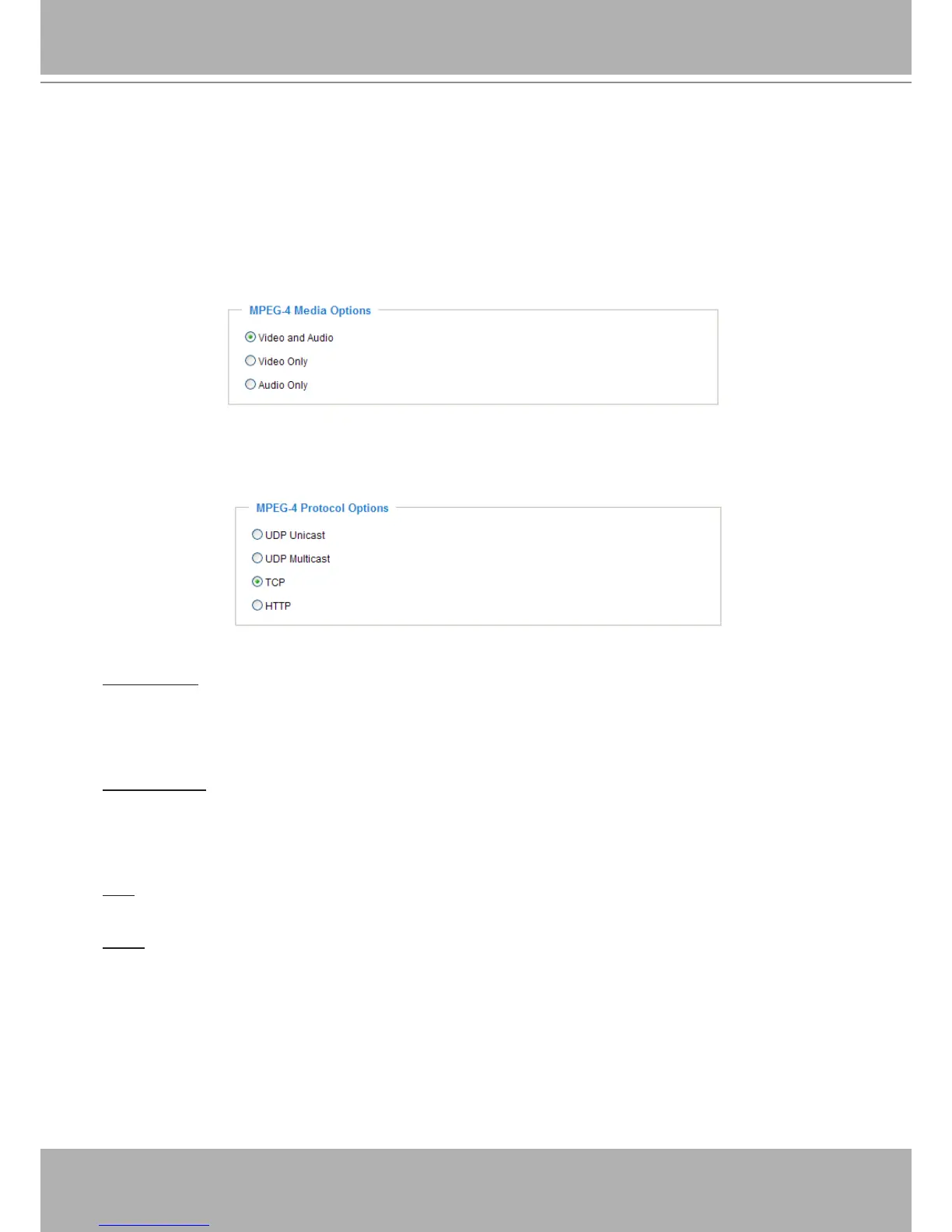 Select to stream video or audio data or both. This is enabled only when the video mode is set to MPEG-4.