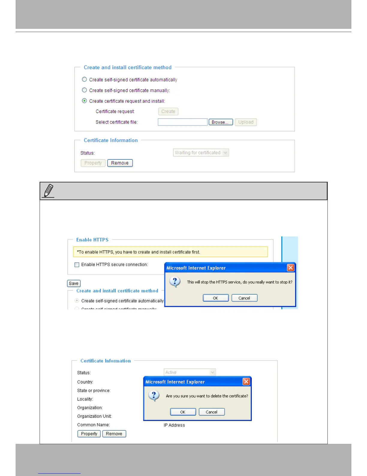 ► If you want to create and install other certificates, please remove the existing one. To remove the