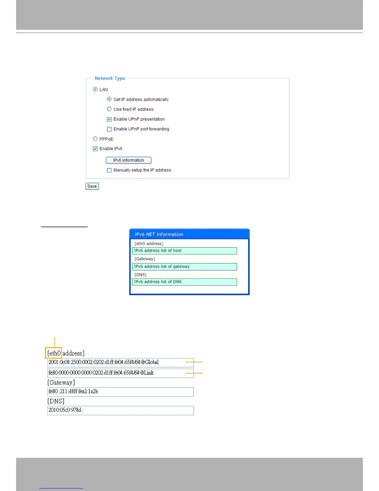 IPv6 Information: Click this button to obtain the IPv6 information as shown below.