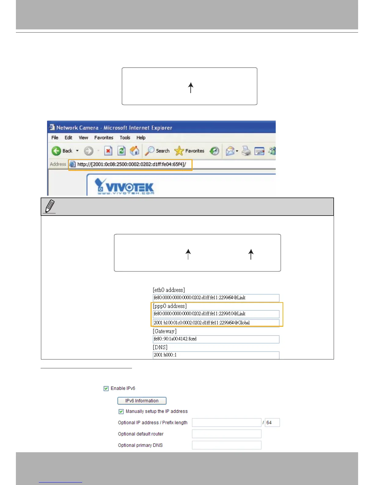 2. Enter the link-global or link-local IPv6 address in the address bar of your web browser.