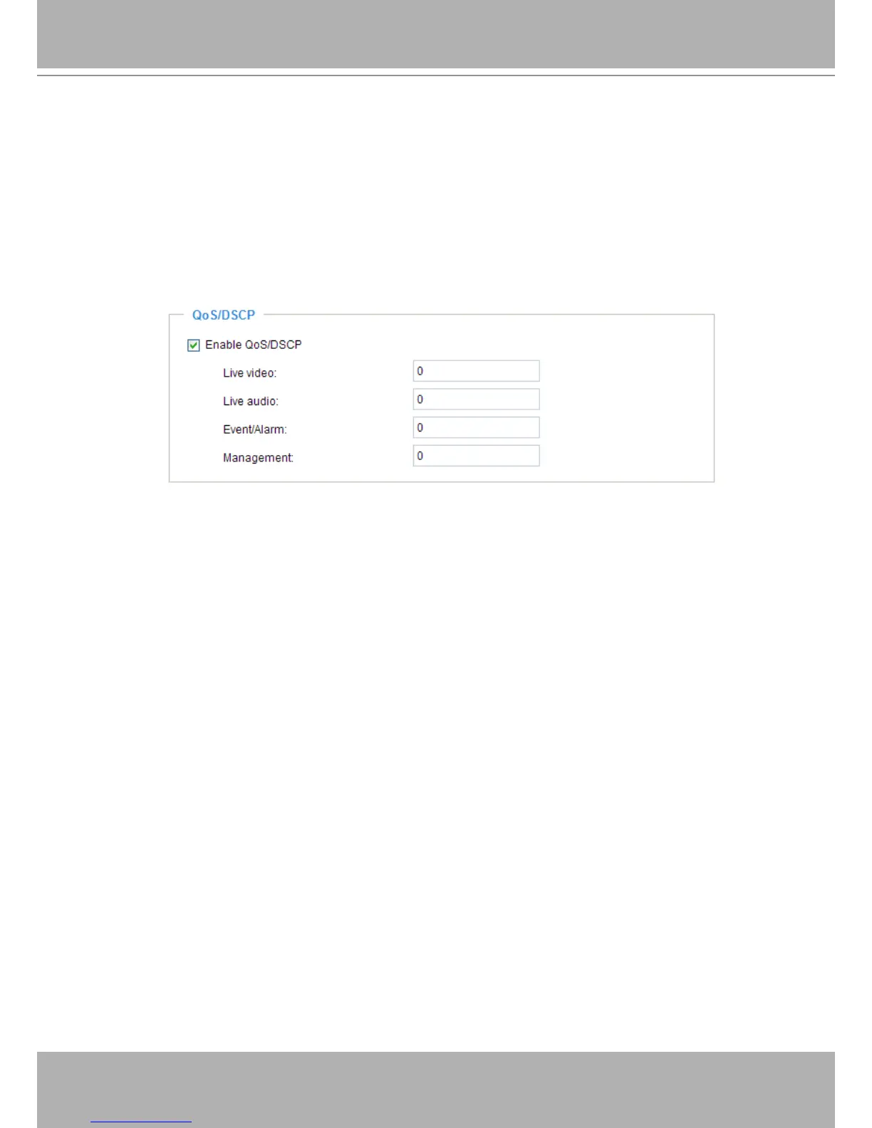 Below are the setting options of DSCP (DiffServ Codepoint). Specify the DSCP value for each application