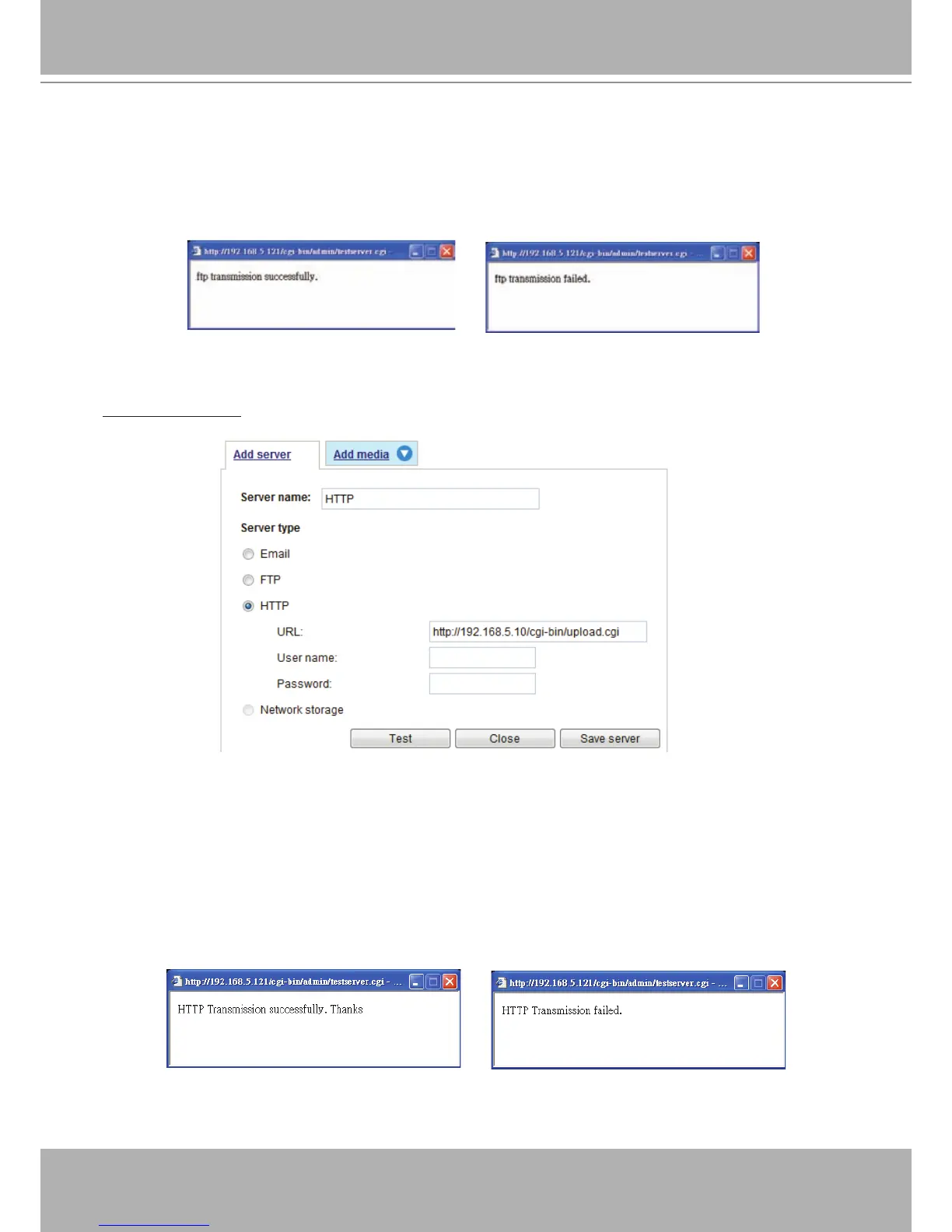 To verify if the FTP settings are correctly congured, click Test. The result will be shown in a pop-up