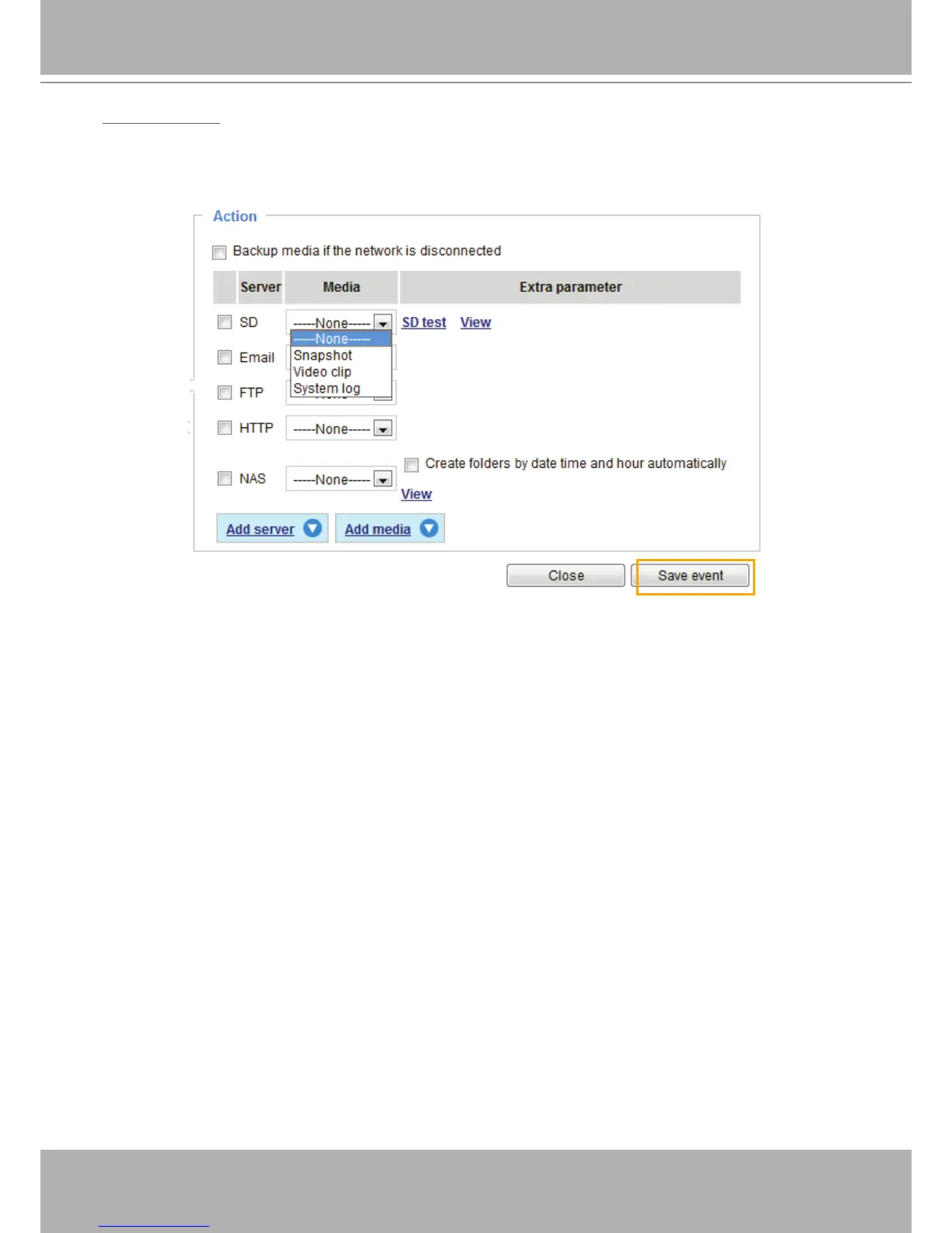 Select to send the media les to a network storage location when a trigger is activated. Please refer to