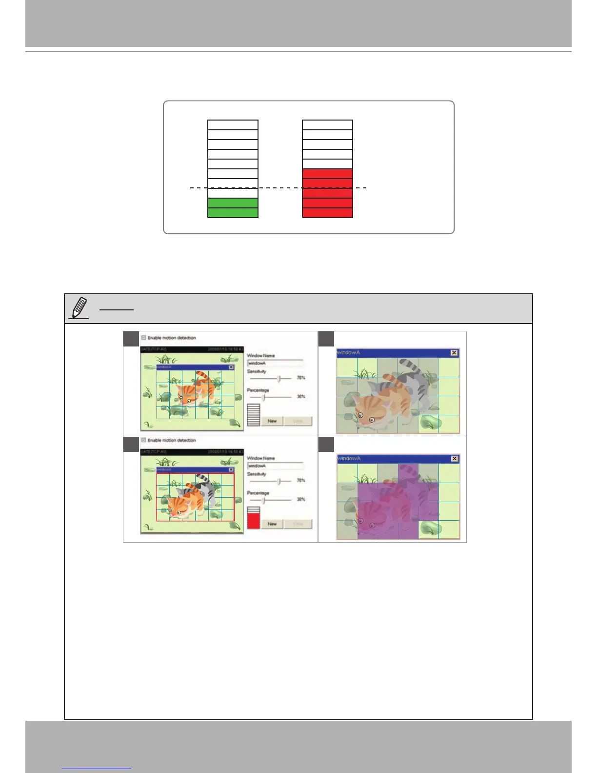 There are two motion detection parameters: Sensitivity and Percentage. In the illustration above,