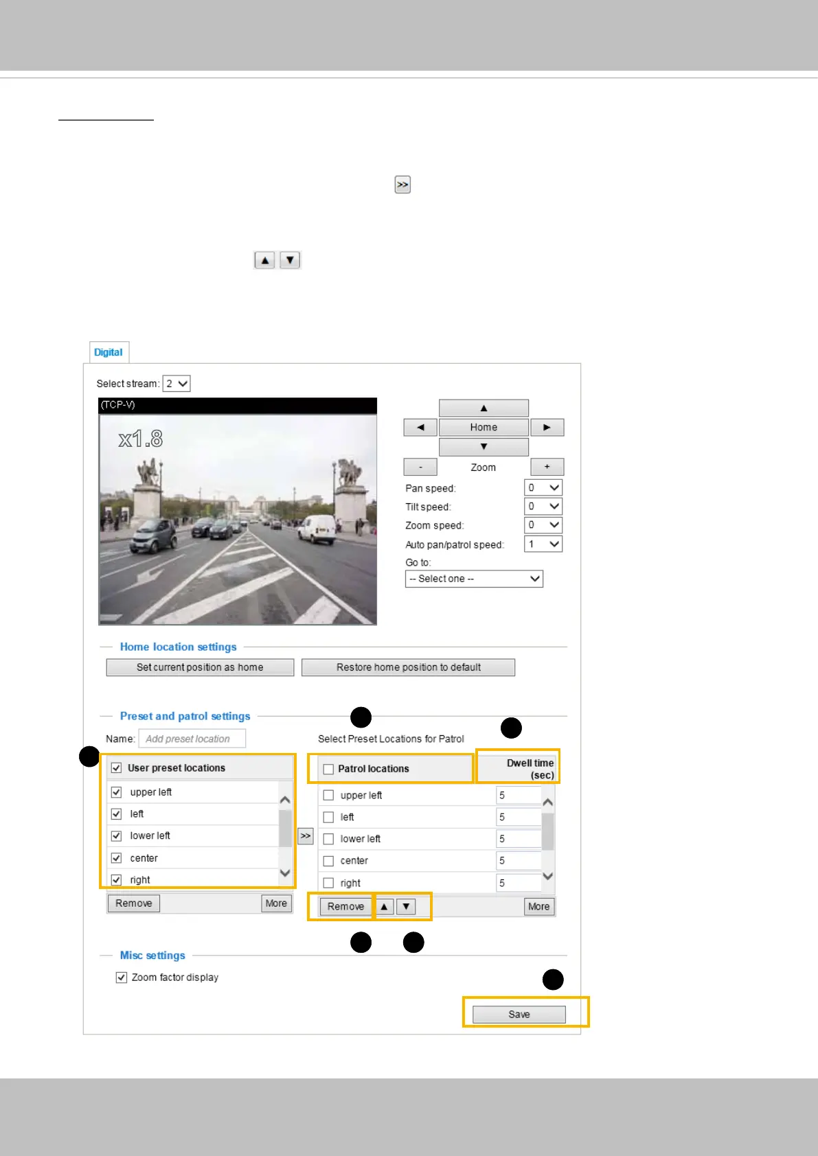 3. Set the Dwelling time for the preset location during an auto patrol.