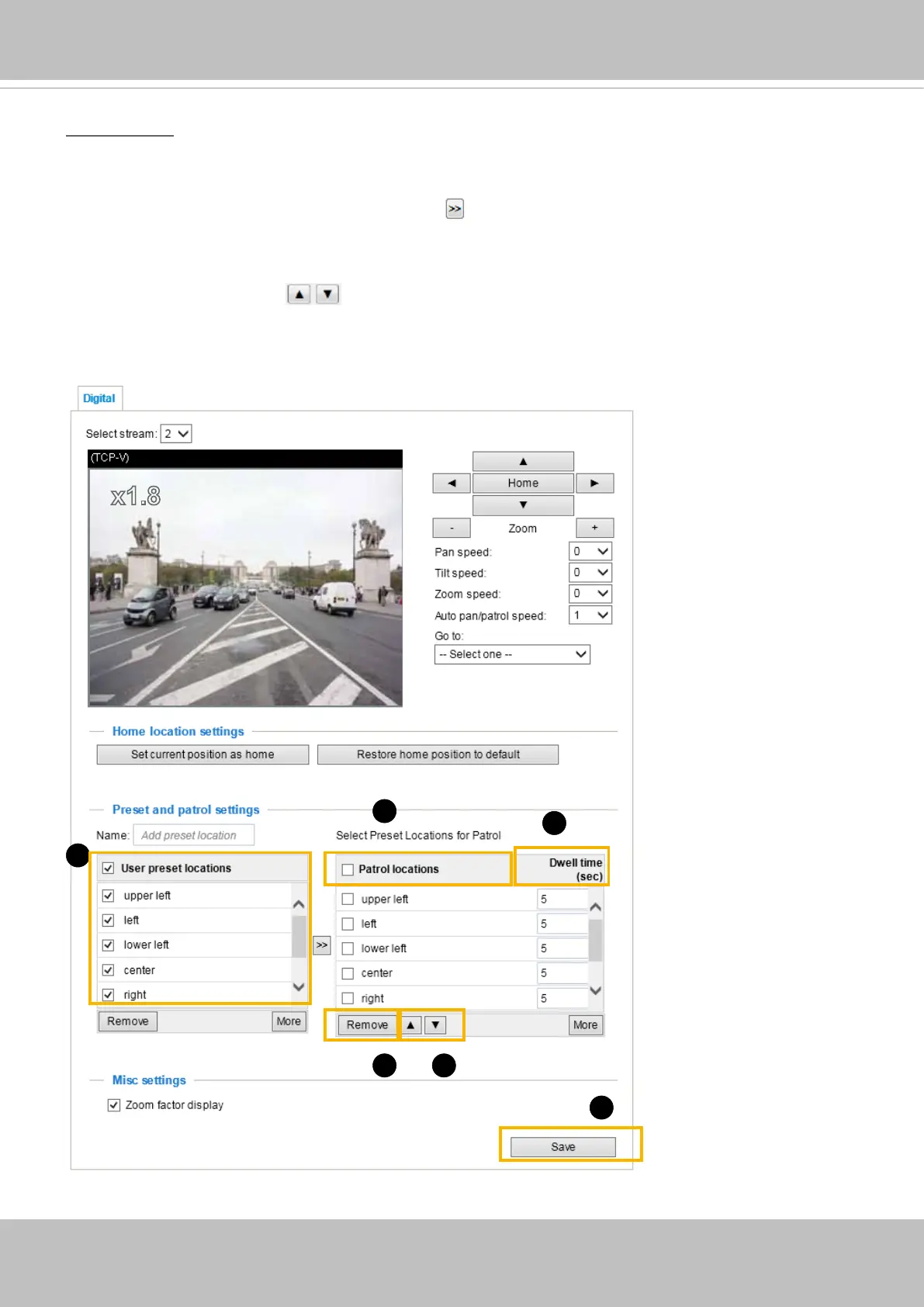 3. Set the Dwelling time for the preset location during an auto patrol.